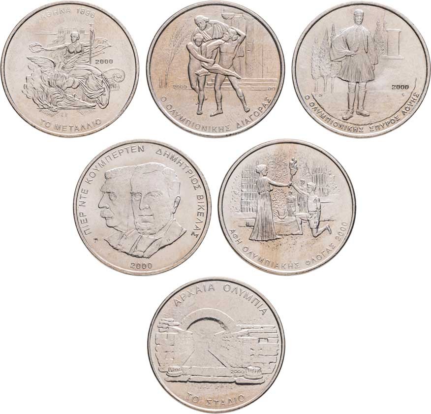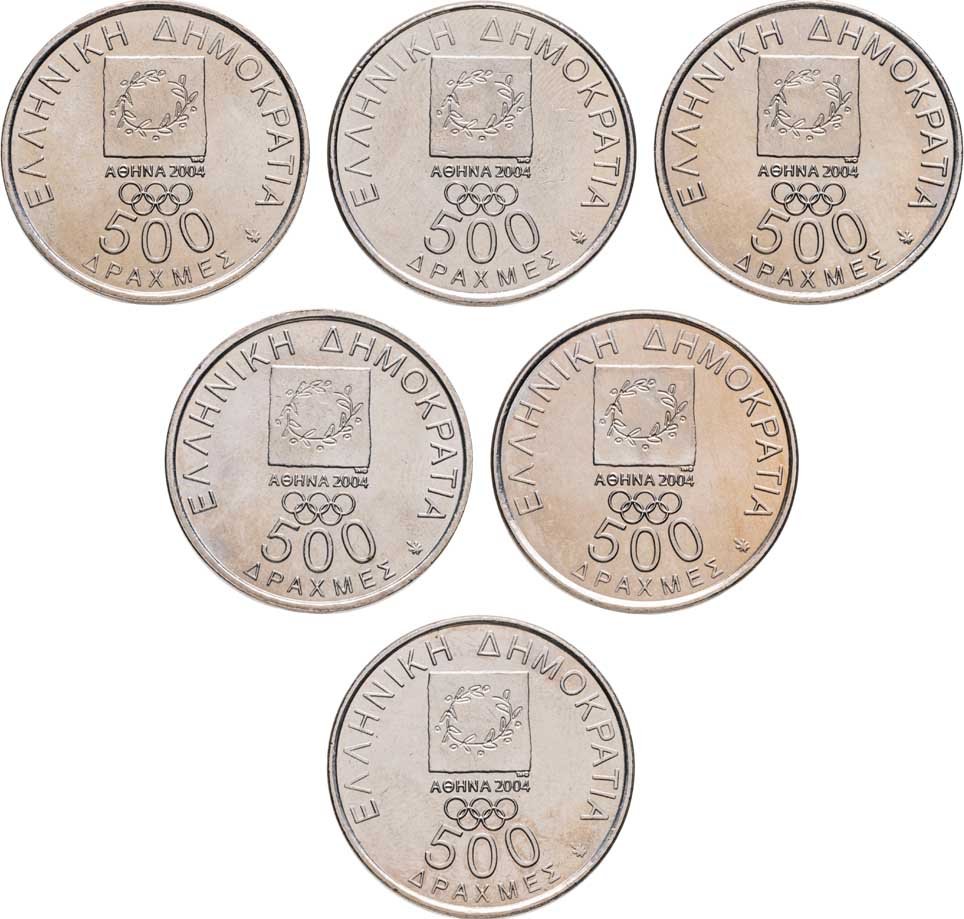 Греция, полный комплект из 6 юбилейных монет 500 драхм 2000 г. XXVIII летние Олимпийские Игры Афины-2004