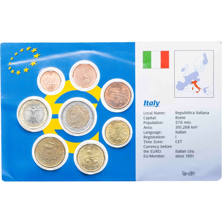 - Тираж: Монетный двор: Рим, Италия; Знак: R; UNC=5000000; BU=51000; Proof=9000 шт.