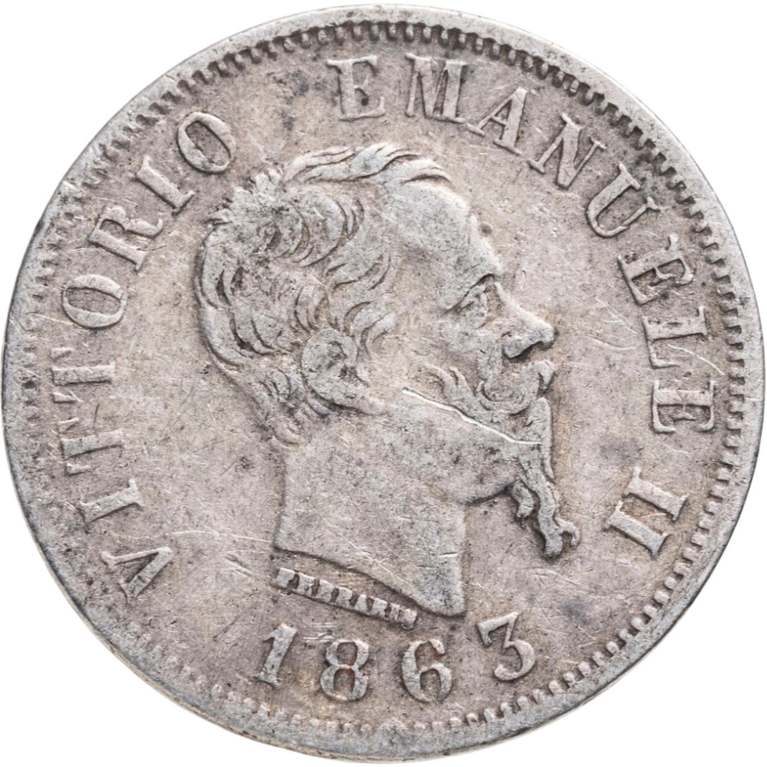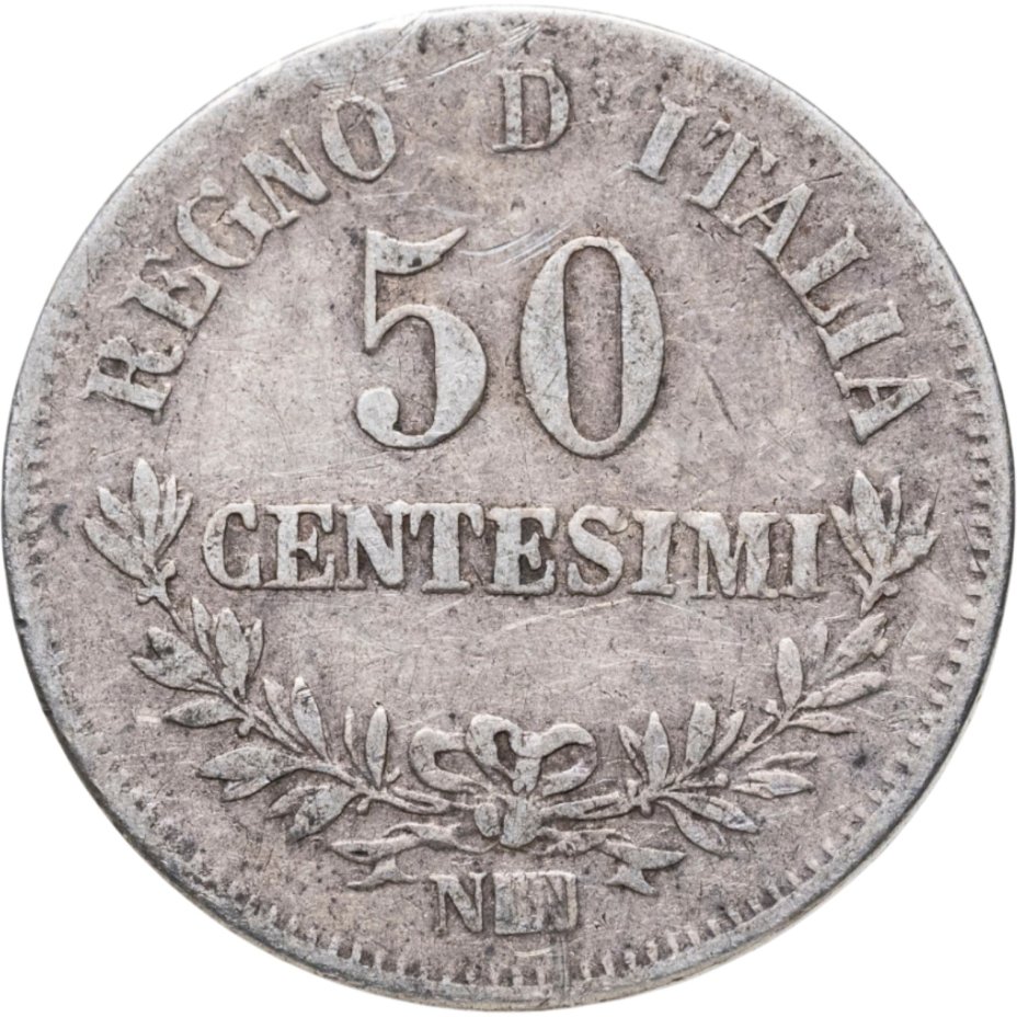 Италия 50 чентезимо (centesimi) 1863 Номинал на реверсе знак монетного двора: "N" - Неаполь