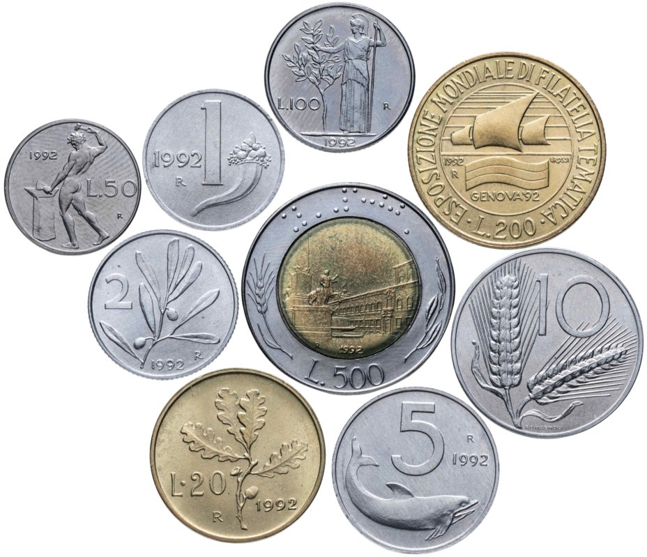 Италия годовой набор 1992 (9 монет)