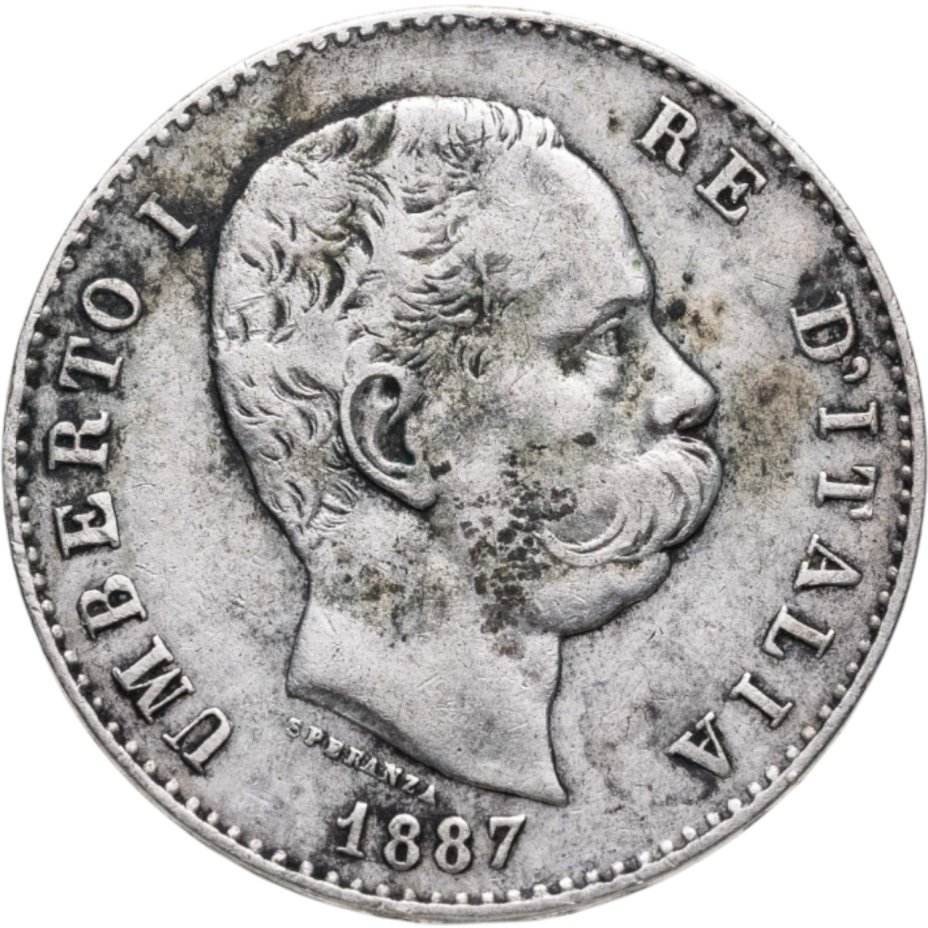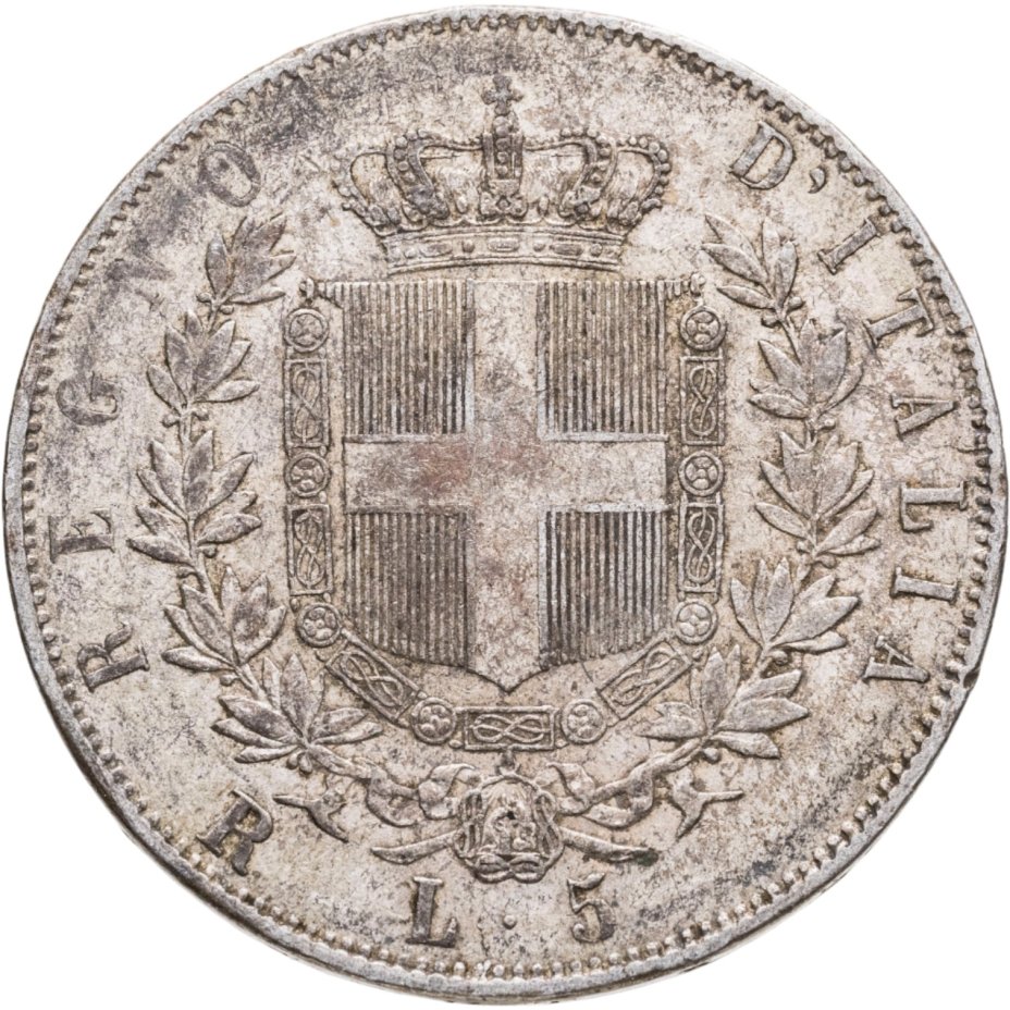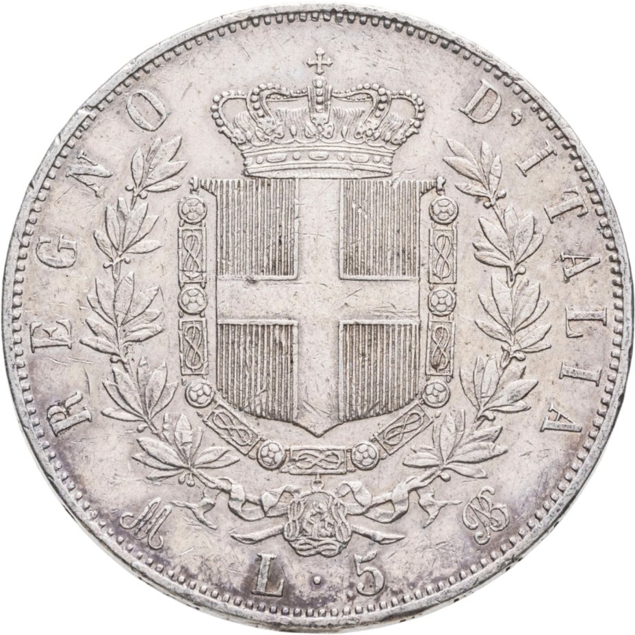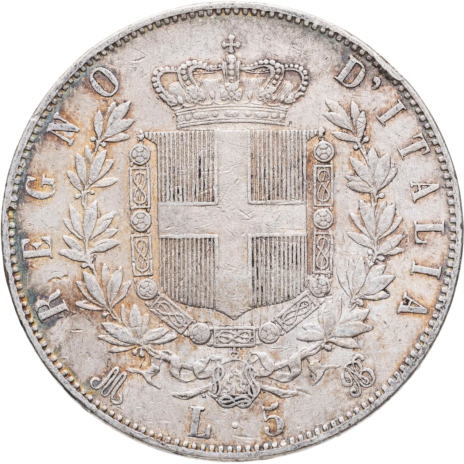 Италия 5 лир 1873 M знак монетного двора: "M" - Милан