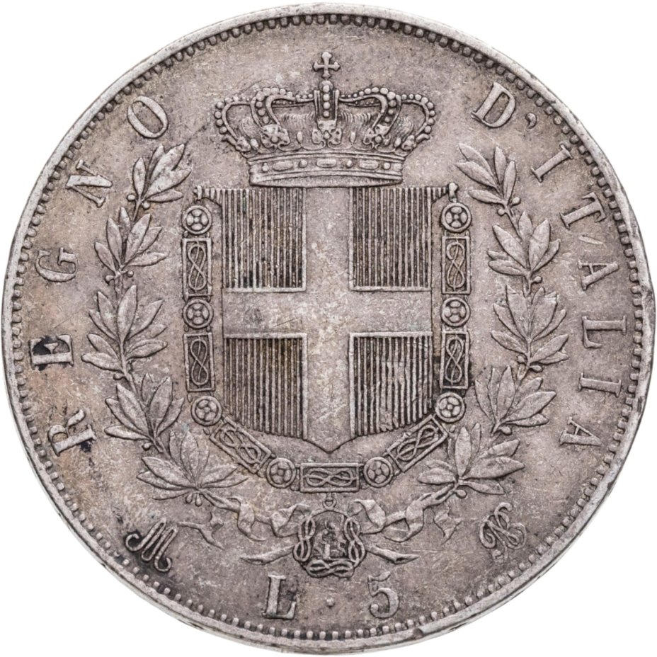 Италия 5 лир 1871 M знак монетного двора: "M" - Милан