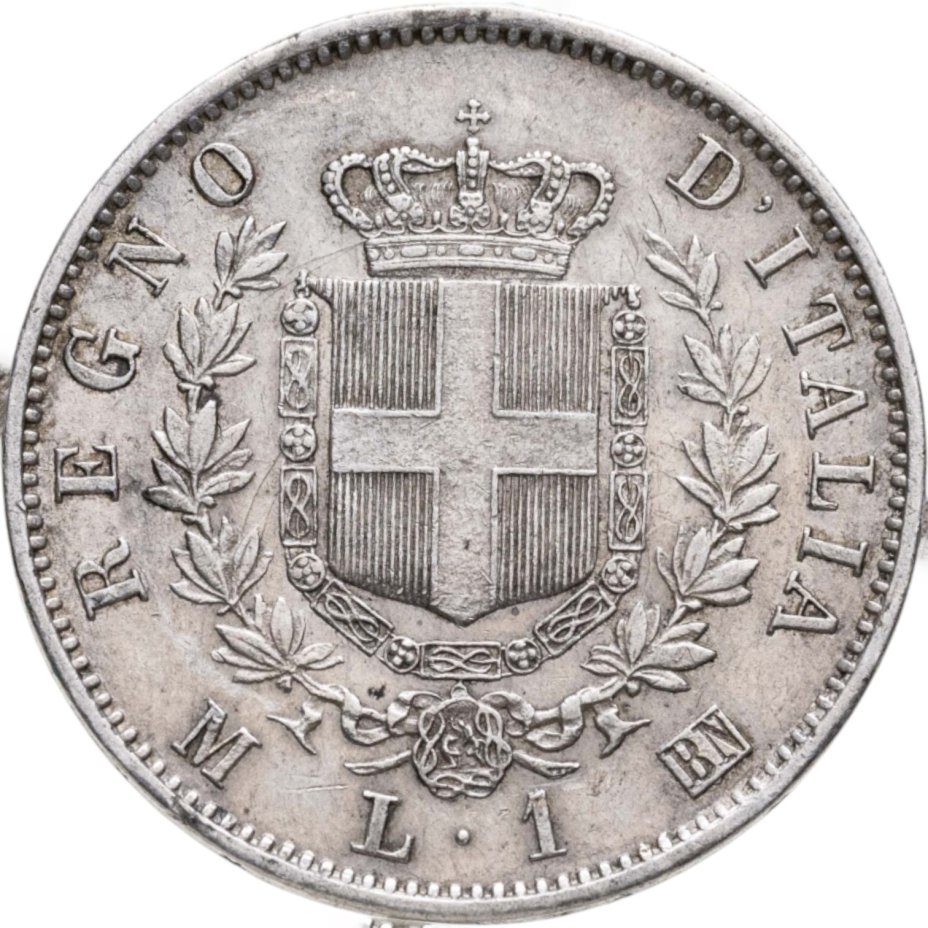 Италия 1 лира (lira) 1863 Щит на реверсе Знак монетного двора: "M" - Милан
