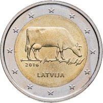 купить Латвия 2 евро 2016 Латвийская бурая корова