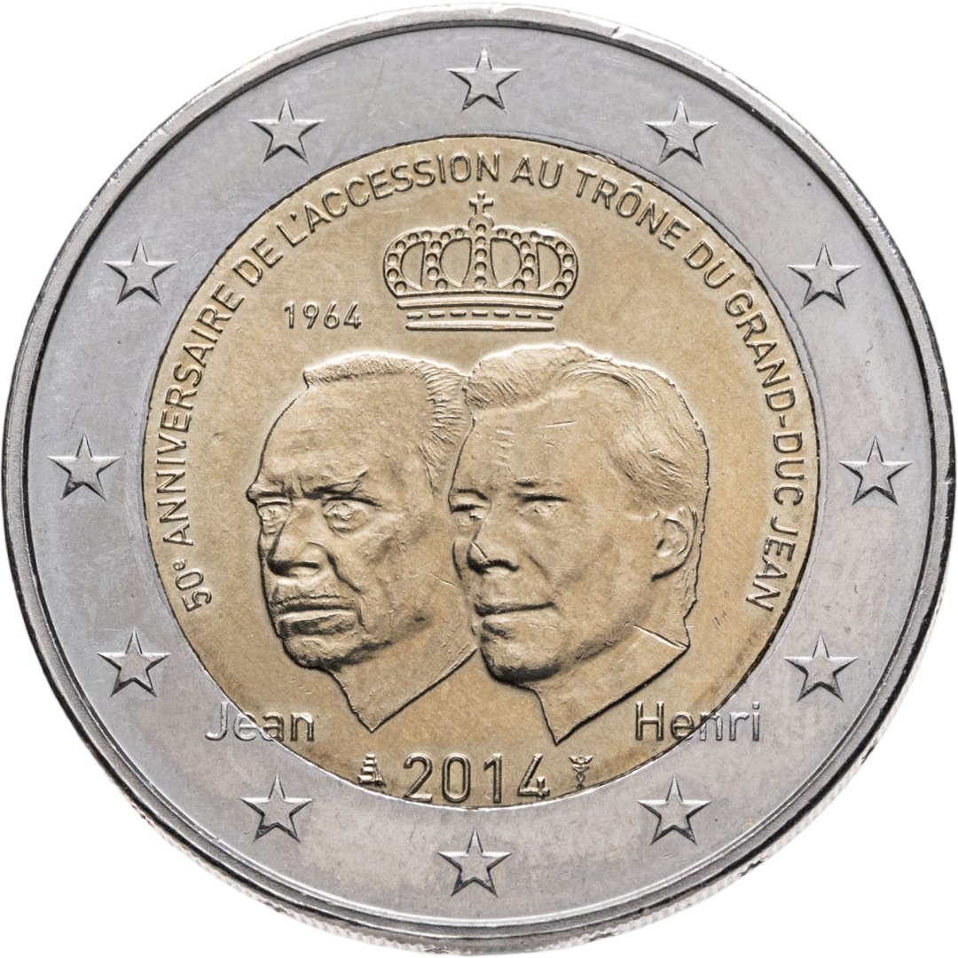 Купить Люксембург 2 евро 2014 "50-летний юбилей вступления на престол великого герцога Жана"