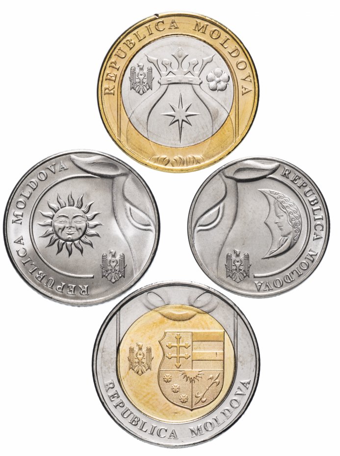 Интересно и то, что изображения на аверсе и реверсе молдавских монет развернуты относительно друг друга на 180°. Отметим и то, что в Молдове частенько выпускают памятные и юбилейные монеты. За время независимости в стране было выпущено более 120 подобных монет. Причем подавляющее большинство памятных и юбилейных монет были изготовлены из серебра, реже чеканка велась в золоте и только две монеты отчеканены из латуни с никелевым покрытием.