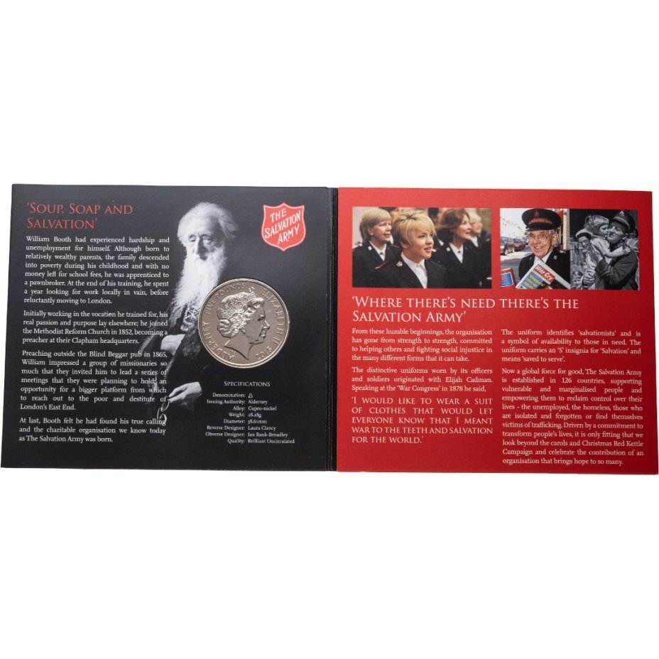 Олдерни 5 фунтов (pounds) 2015 "150 лет Армии спасения" в буклете