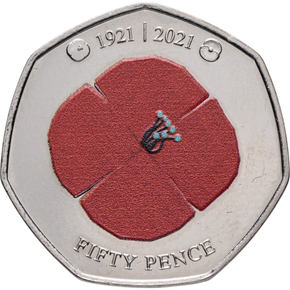 Джерси 50 пенсов 2021 "100 лет Королевскому британскому легиону /Четырехлистный мак/", Цветное покрытие