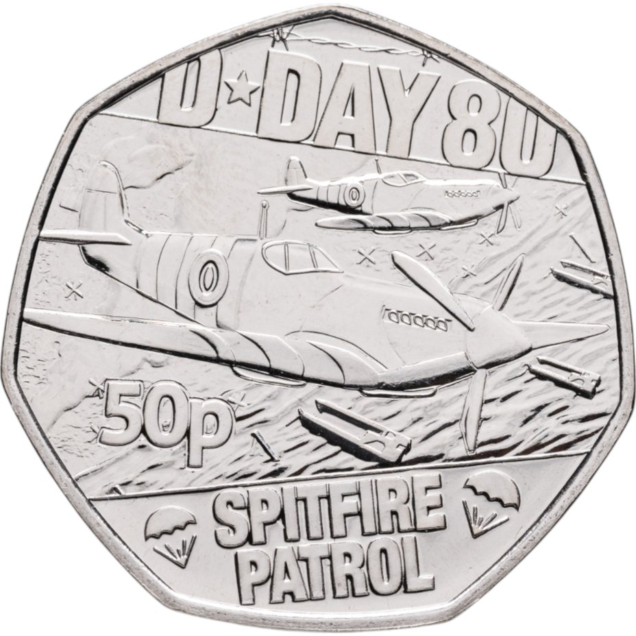 Джерси 50 пенсов 2024 « 80 лет высадке союзников в Нормандии (D-Day). Патруль истребителей "Спитфайр"»