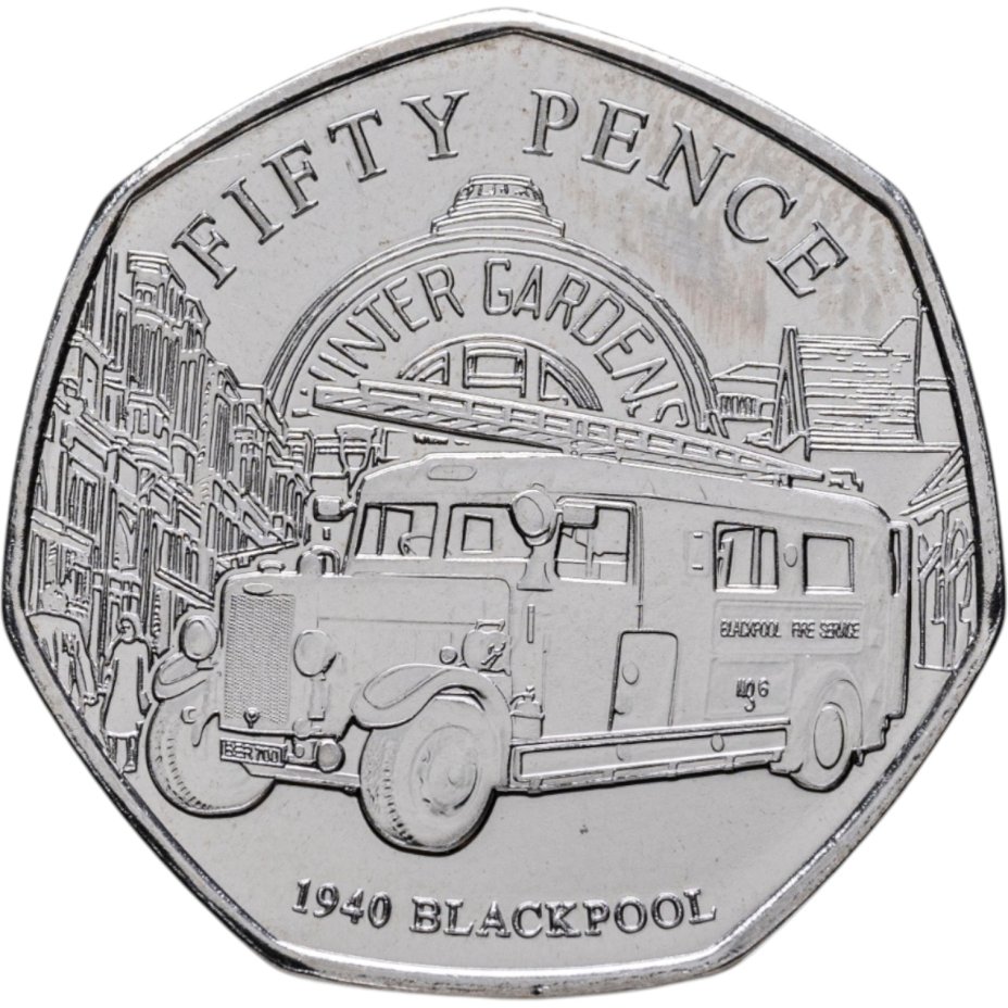 Купить Джерси 50 пенсов (pence) 2024 "История Пожарных Бригад - 1940 Блэкпул"