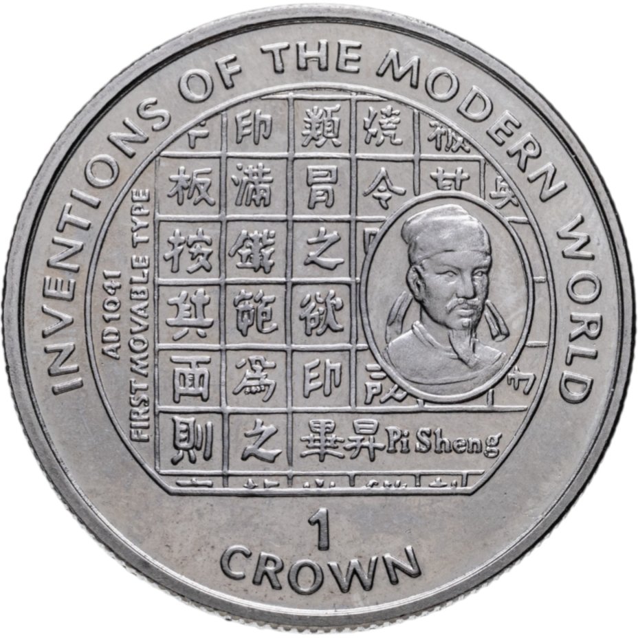 Остров Мэн 1 крона (crown) 1995 "Изобретения: Би Шэн, наборный шрифт"