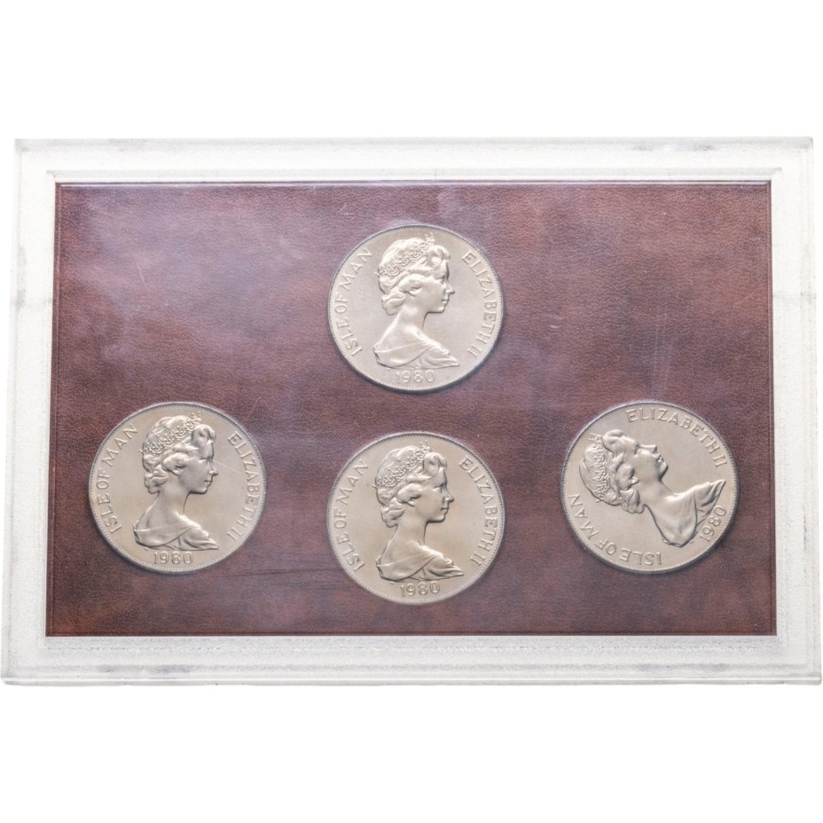 Остров Мэн набор из 4-х монет 1 крона (crown) 1980 Олимпийские игры в Москве и Лейк-Плэсиде, в памятном футляре