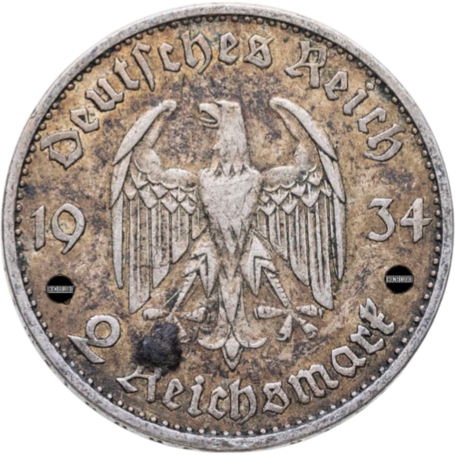 Германия 5 рейхсмарок 1935 E Рейхспрезидент Германии Пауль фон Гинденбург