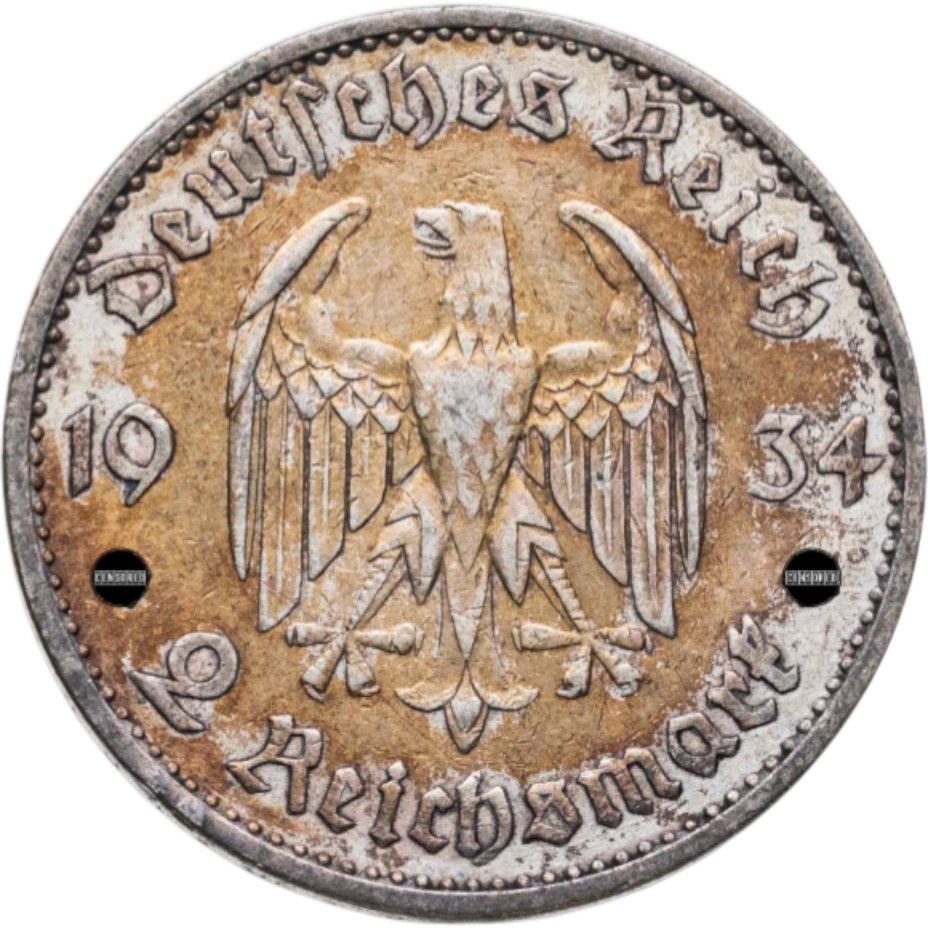 Германия (Третий Рейх) 2 рейхсмарки 1934 "1 год нацистскому режиму, Гарнизонная церковь в Потсдаме"
