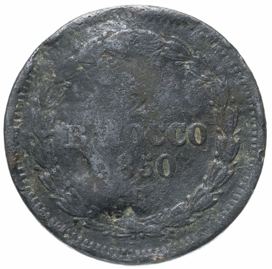 Папская область 1 байокко (baiocco) 1850 V Знак монетного двора на: "R" - Рим