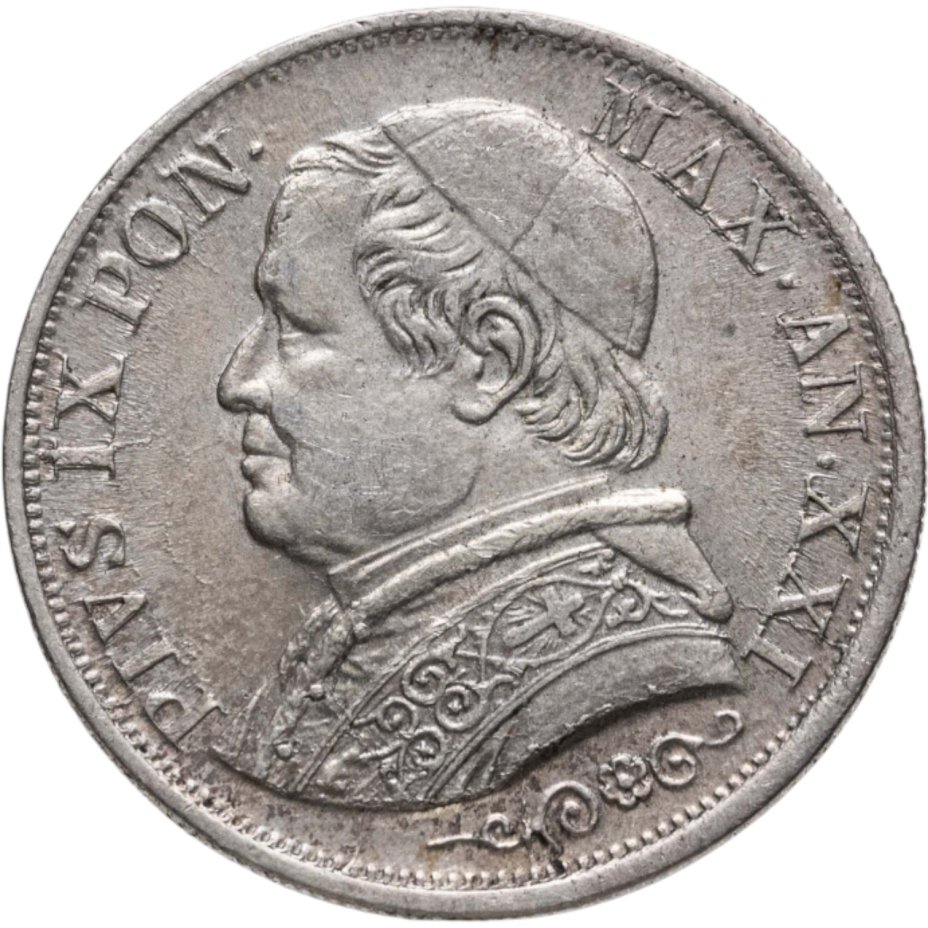 Папская область 1 лира (lira) 1866 Надпись "PIVS IX PON." на аверсе