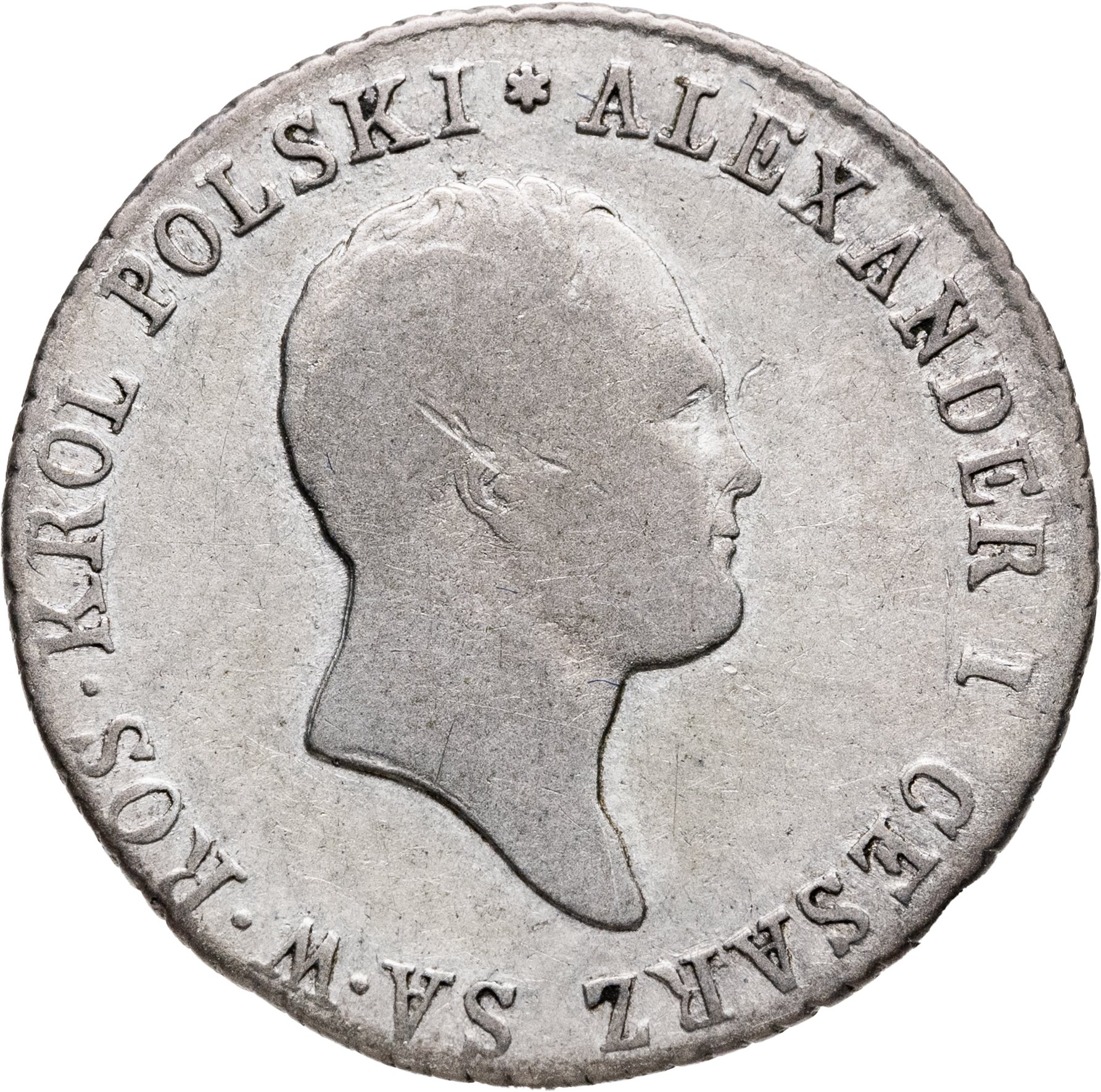 В центре профильный портрет вправо императора Александра I. Вокруг портрета круговая надпись: «ALEXANDER I CESARZ SA• W• ROS• KRÓL POLSKI» (Александр I император и самодержец Всероссийский, король Польский). Разделённая, над головой императора, шестиконечной звездочкой.