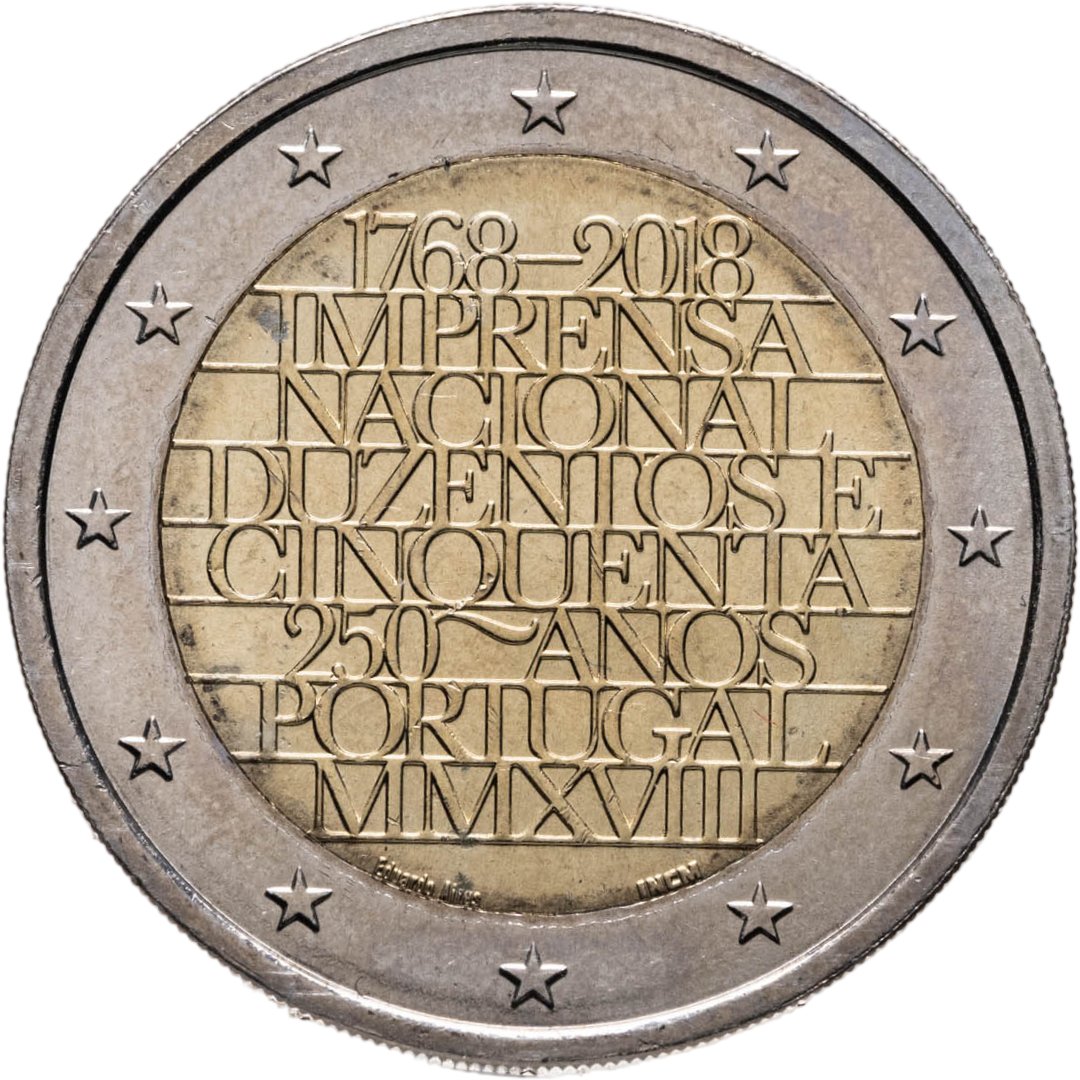 купить Португалия 2 евро (euro) 2018 250 лет национальной типографии