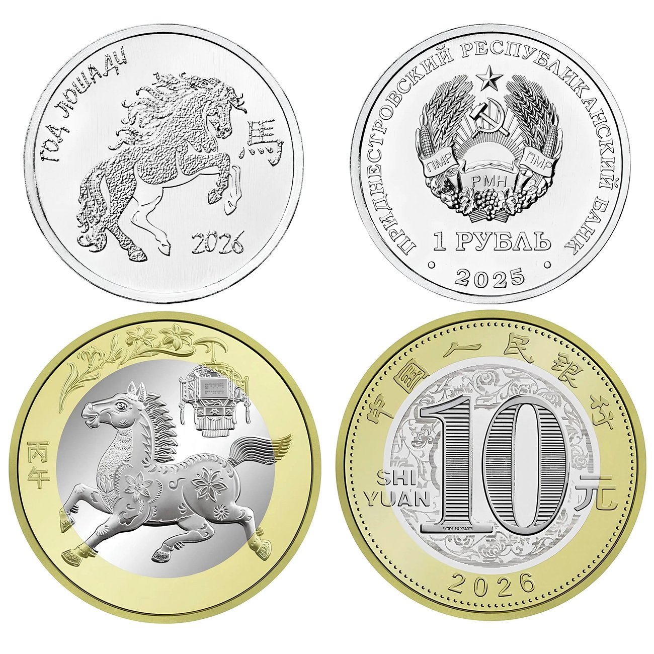 [ПОДАРОК!] Набор из 2 монет Приднестровье 1 рубль 2025 "Год Лошади" и Китай 10 юаней 2026 "Китайский календарь - Год лошади"