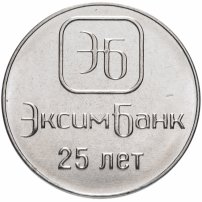 Свой четверть-вековой юбилей «Эксимбанк» праздновал в 2018 году. Монета, посвящённая этому праздничному событию, вышла в обращение большим тиражом в 250 000 штук. Обычно, памятные монеты выпускают тиражом впятеро меньшим, а прочие банки, праздновавшие юбилеи с памятными монетами обходились и вовсе малыми тиражами, от 1 000 до 5 000 шт.
