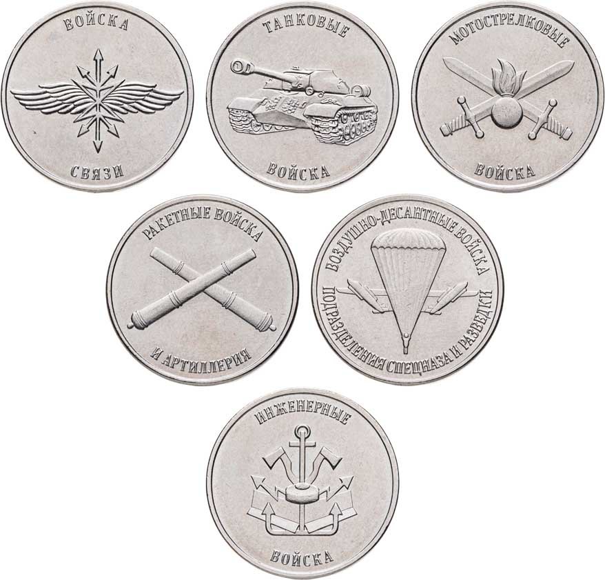Приднестровье набор из 6 монет 1 рубль 2023 серии "Рода войск Вооруженных сил"