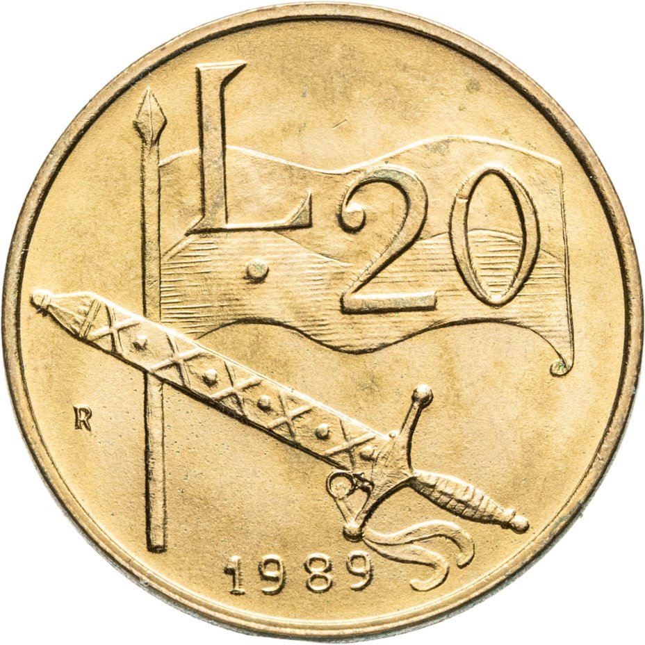 Сан-Марино 20 лир (lire) 1989 "Шестнадцать веков истории"