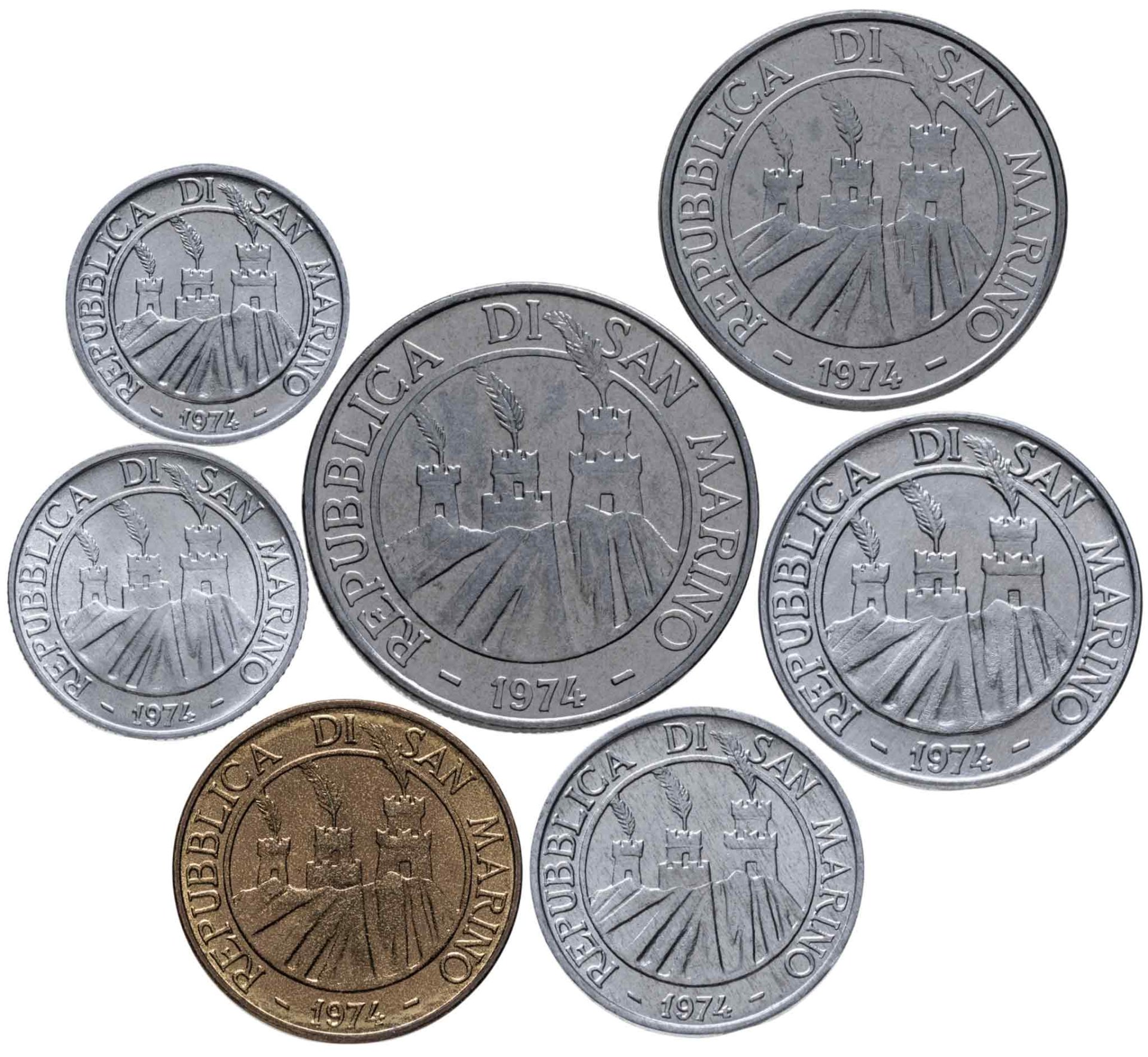 Купить Сан-Марино годовой набор из 7 монет 1974