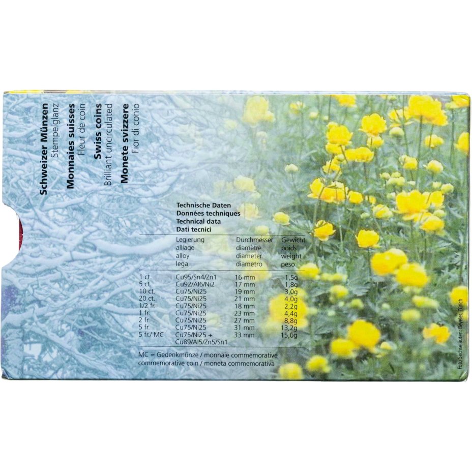 - Тираж: Монетный двор: Берн, Швейцария; Знак: B; UNC=400000; BU=да шт.