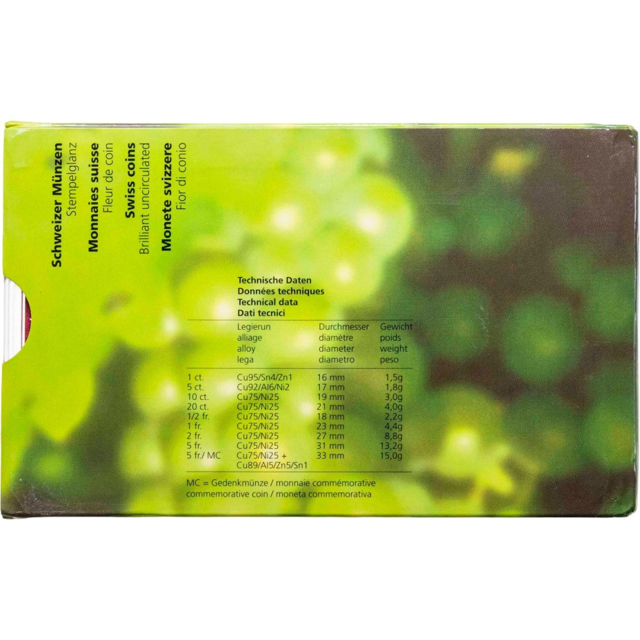 - Тираж: Монетный двор: Берн, Швейцария; Знак: B; UNC=39875000 шт.