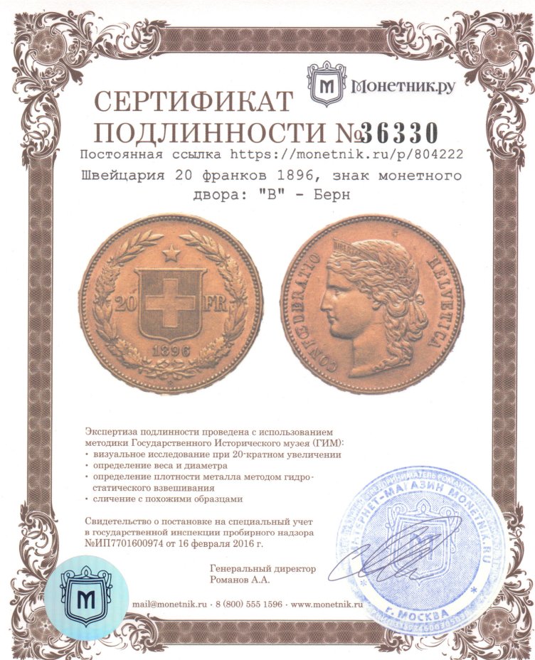 - Тираж: Монетный двор: Берн, Швейцария; Знак: B; UNC=20008813 шт.