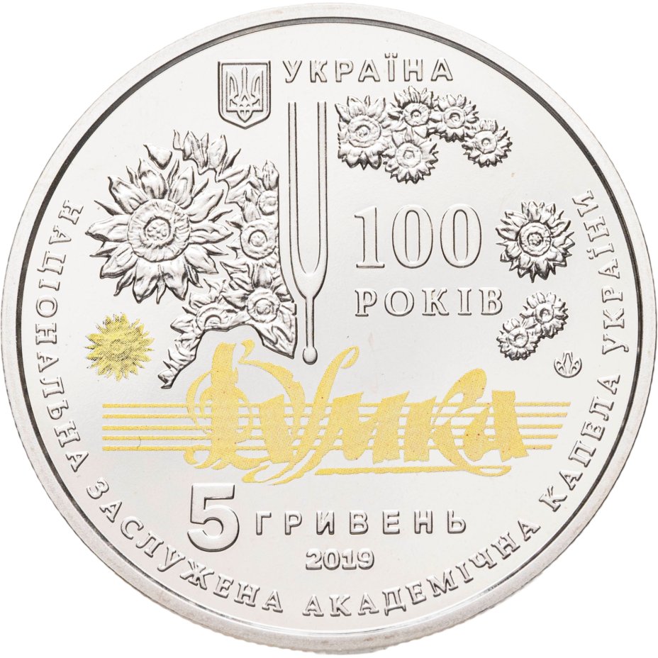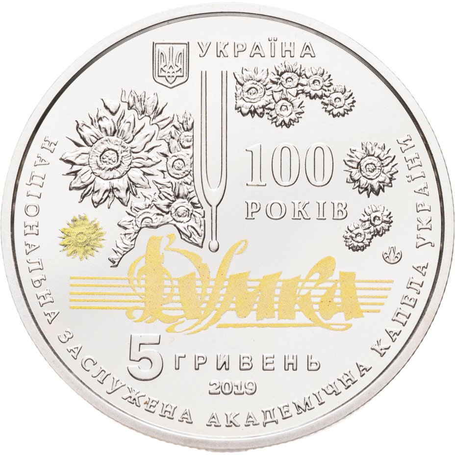 Украина 5 гривен 2019 "100 лет Национальной заслуженной академической капелле Украины "Думка"