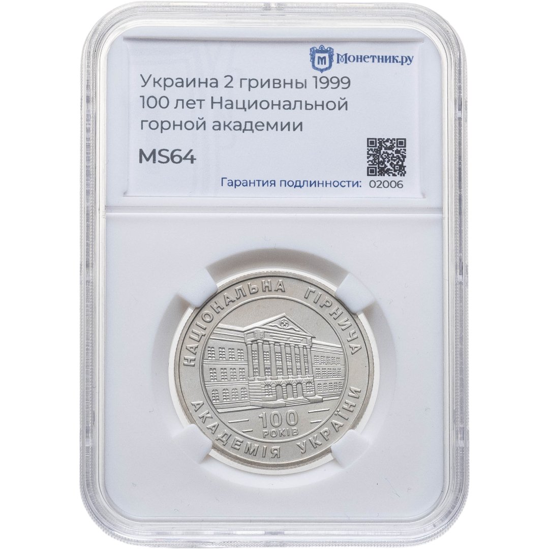 купить Украина 2 гривны 1999 "100 лет Национальной горной академии Украины" в слабе Монетник.ру MS64