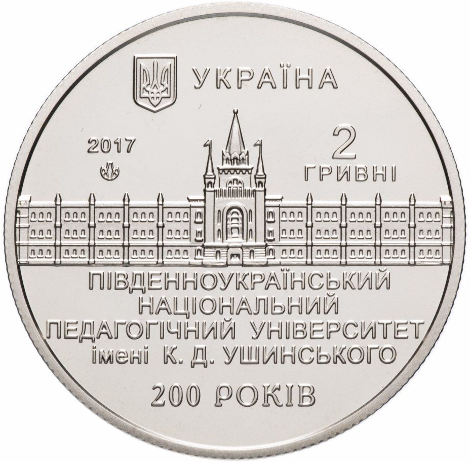 Украина 2 гривны 2017 "200 лет Южноукраинскому национальному педагогическому университету имени К. Д. Ушинского"