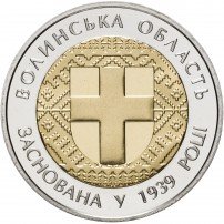 Купить Украина 5 гривен 2014 "75 лет образования Волынской области"
