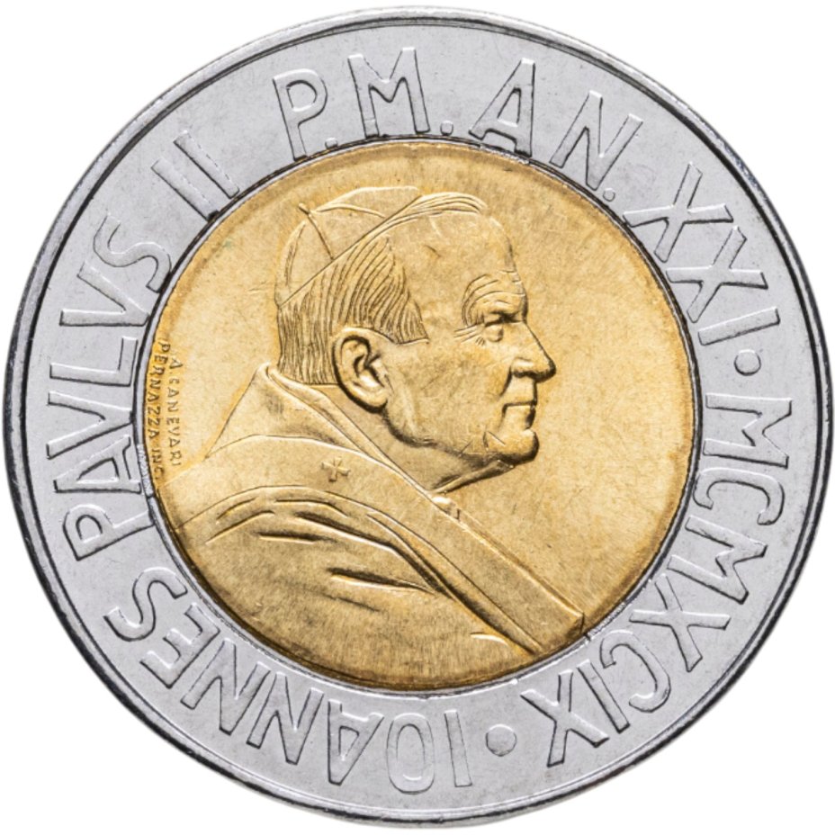 Ватикан 500 лир (lire) 1999 "Время выбора, время надежды"