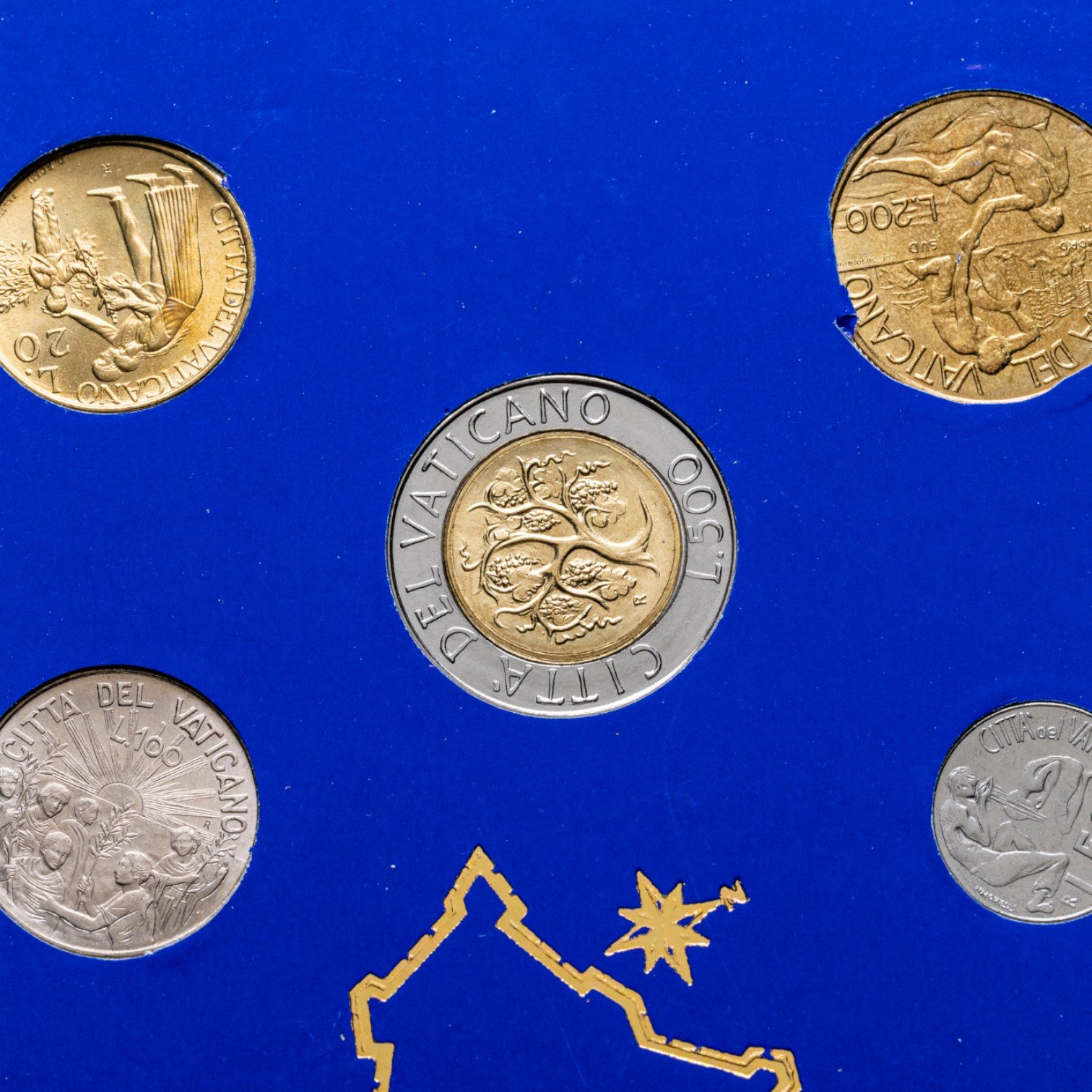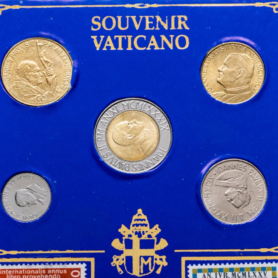 Ватикан набор монет (5 штук) лиры + 2 марки 1989-1999