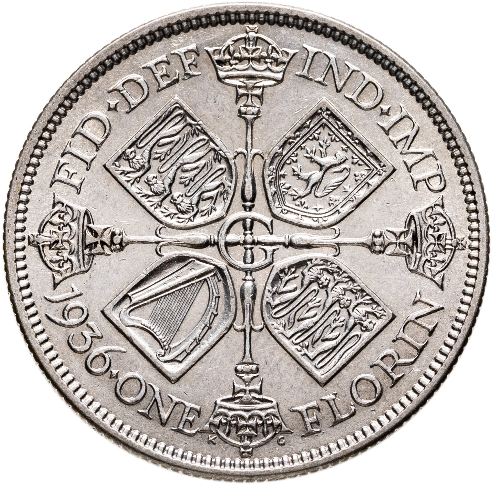 Великобритания 2 шиллинга (флорин, shillings) 1936 в слабе Монетник. ру AU det чистка