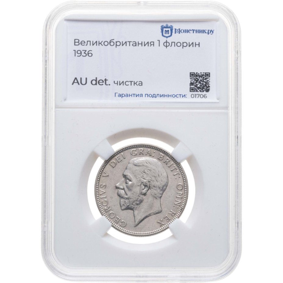 Купить Великобритания 2 шиллинга (флорин, shillings) 1936 в слабе Монетник. ру AU det чистка