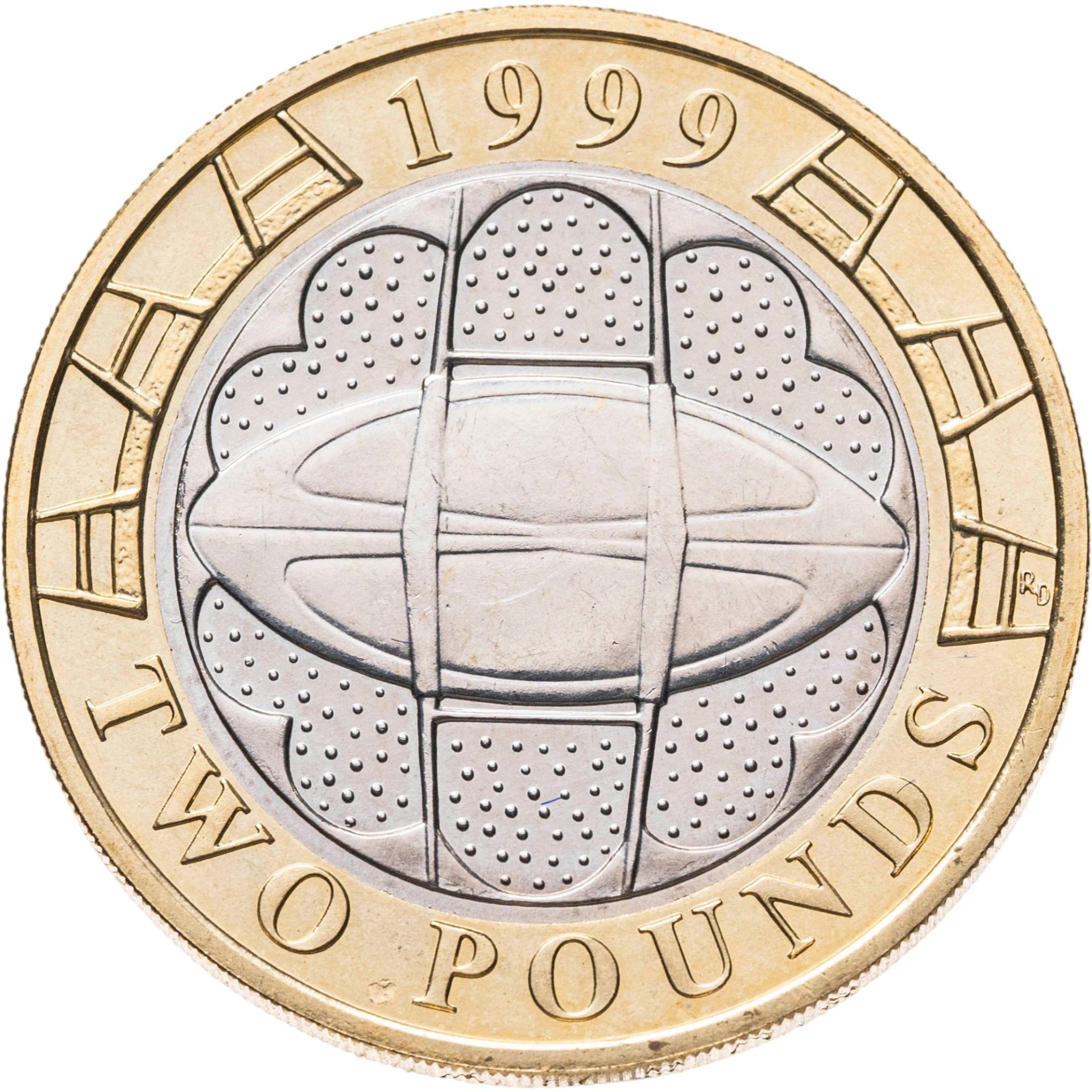 Купить Великобритания 2 фунта (pounds) 1999 "Чемпионат мира по регби"