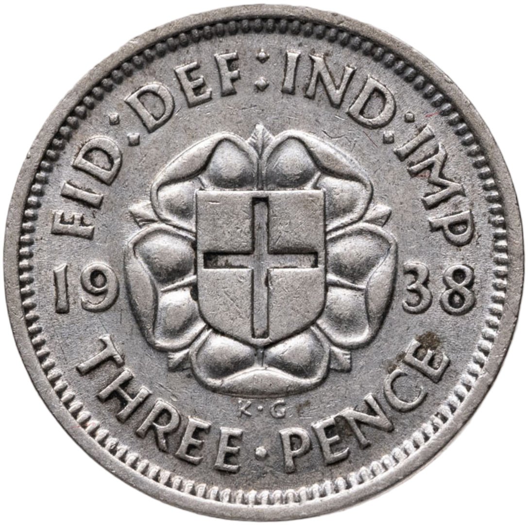 Купить Великобритания 3 пенса (pence) 1938  Серебро /серый цвет/