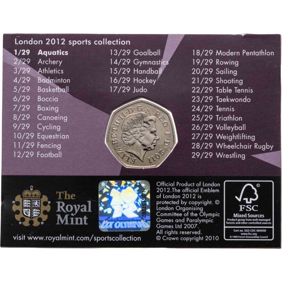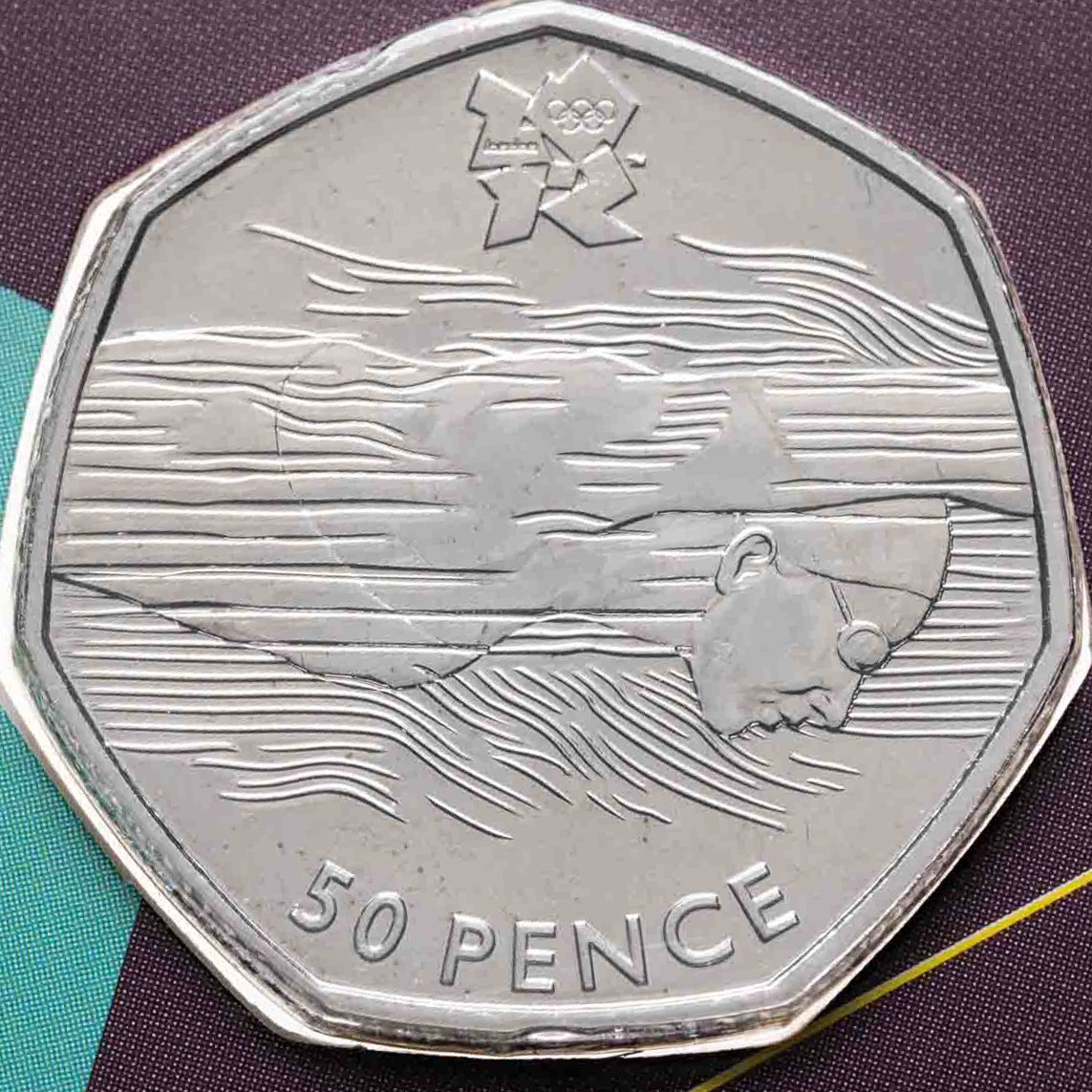 Купить Великобритания 50 пенсов (pence) 2011 "XXX летние Олимпийские Игры, Лондон 2012 - Плавание" в буклете