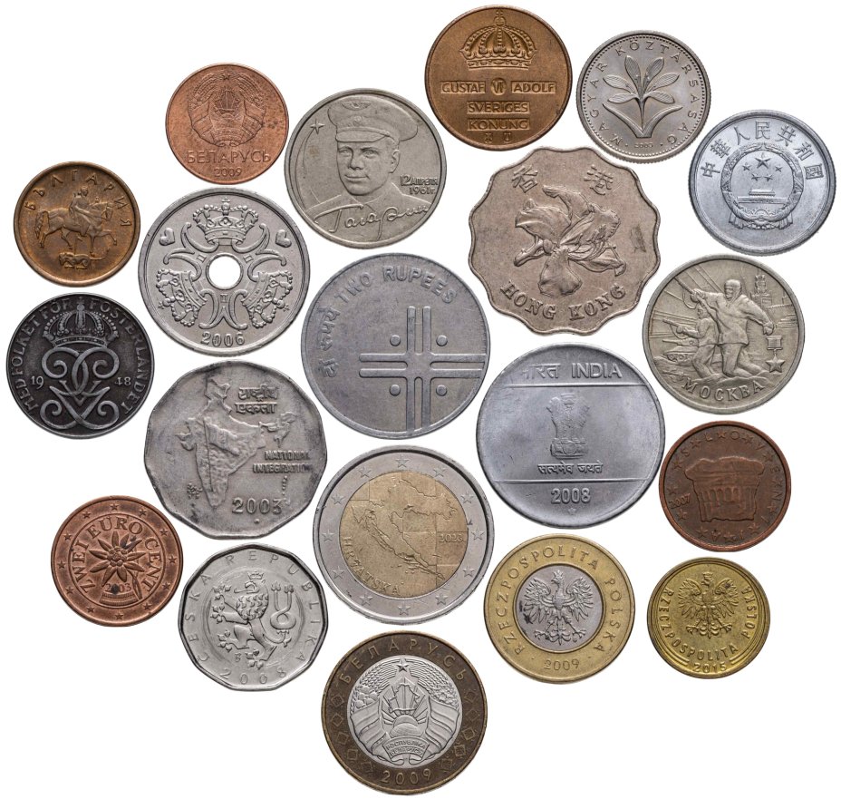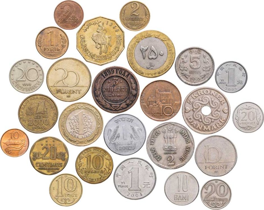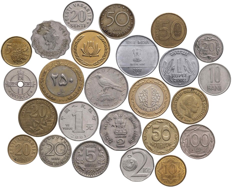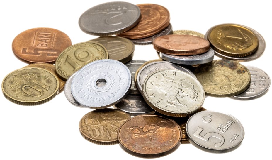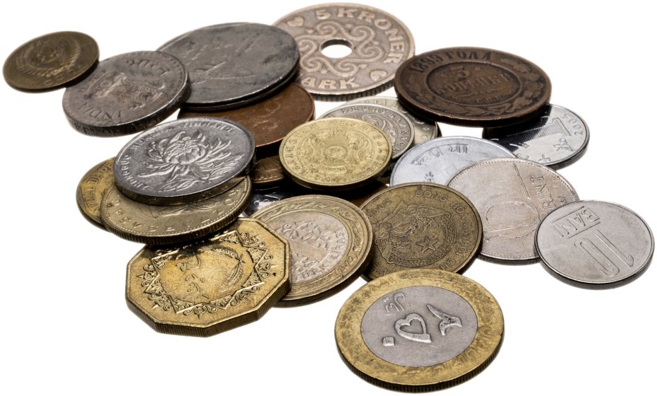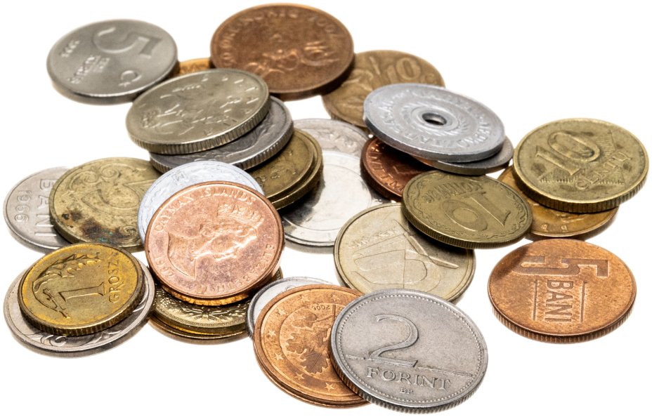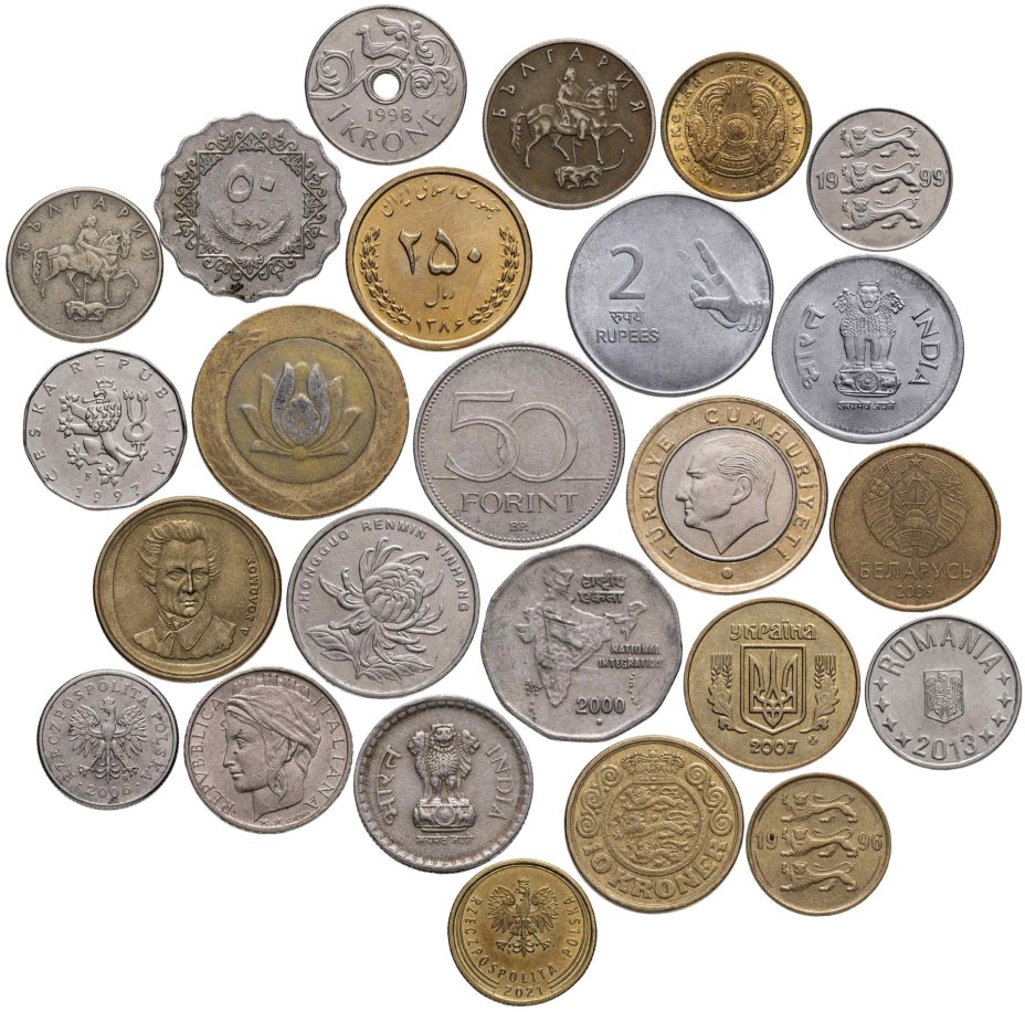 Набор из 20-ти монет разных стран мира "Монеты номиналом 1 единичка" в мешочке
