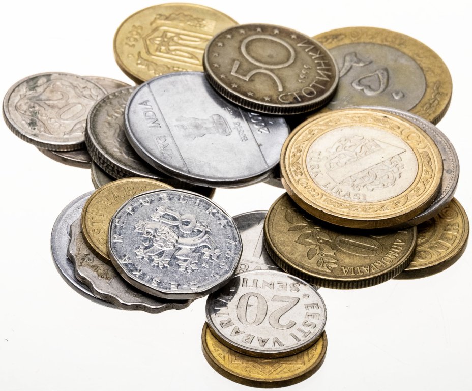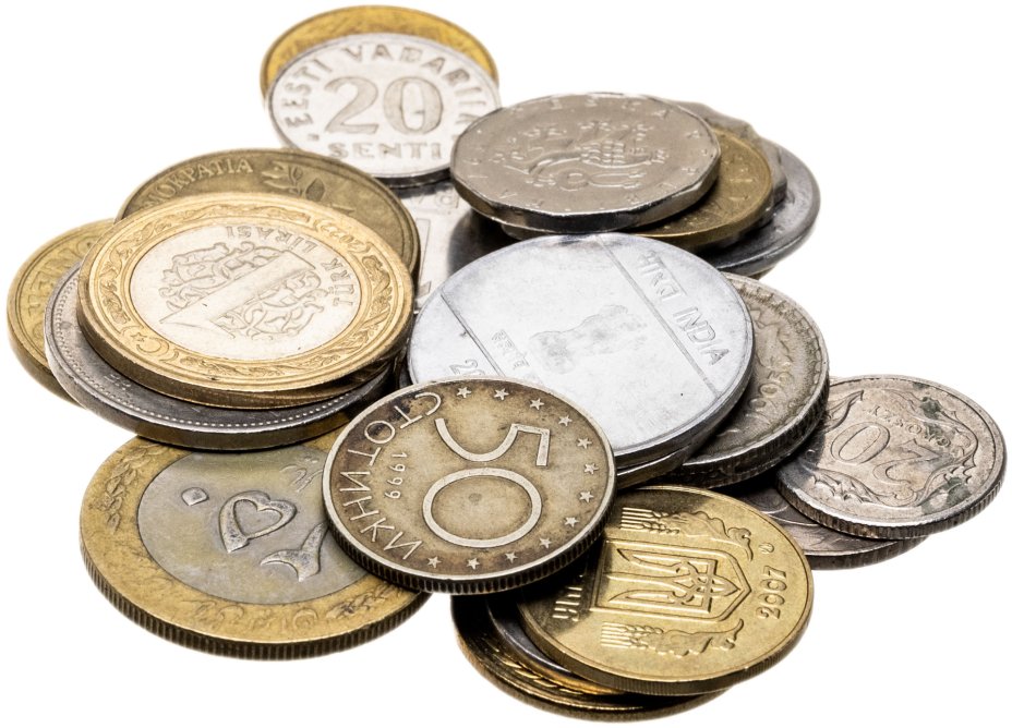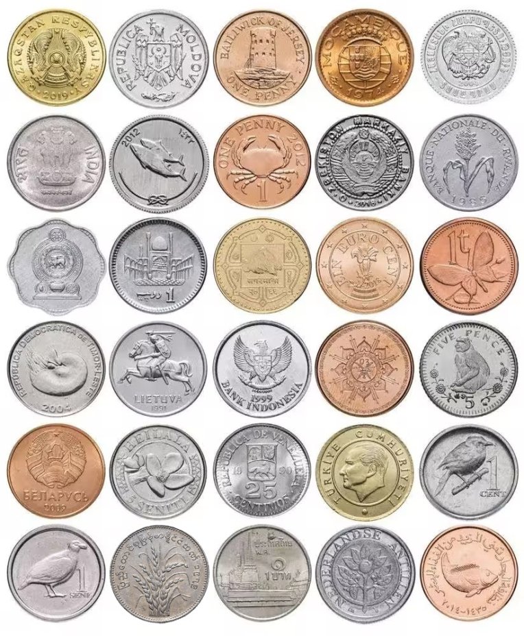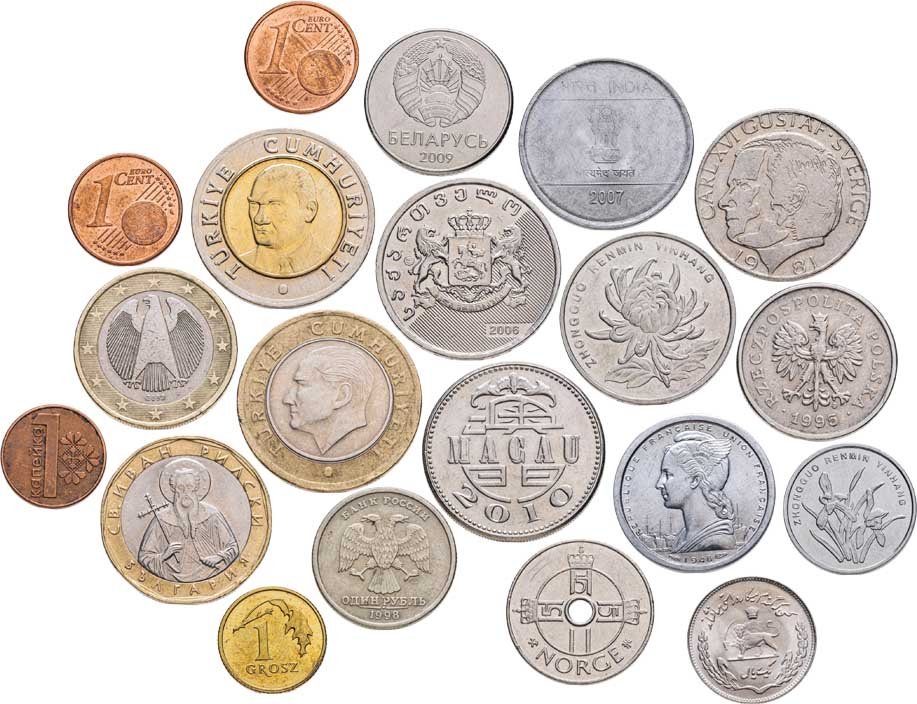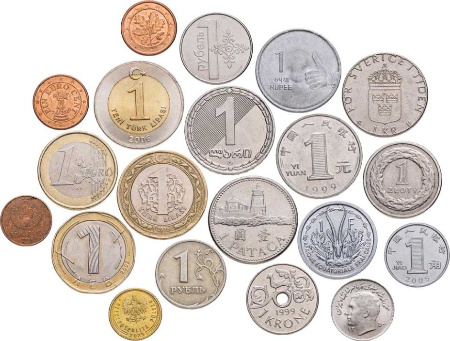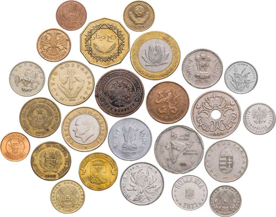 Набор из 20-ти монет разных стран мира "Монеты номиналом 1 единичка" в мешочке