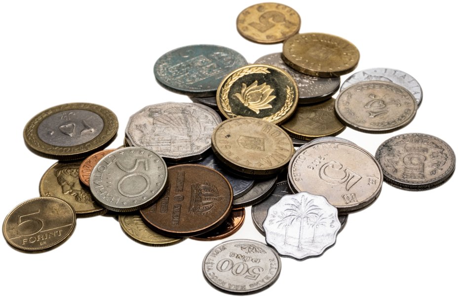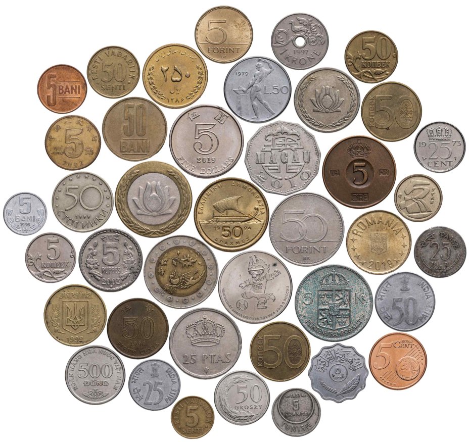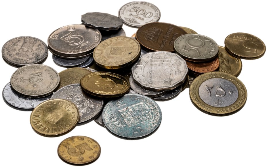 Набор из 40 монет разных стран мира "Монеты с 5 в номинале" в мешочке