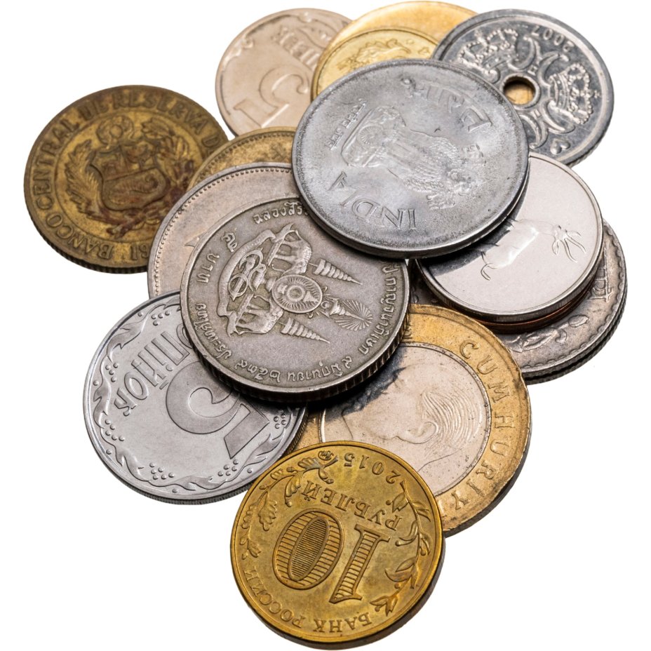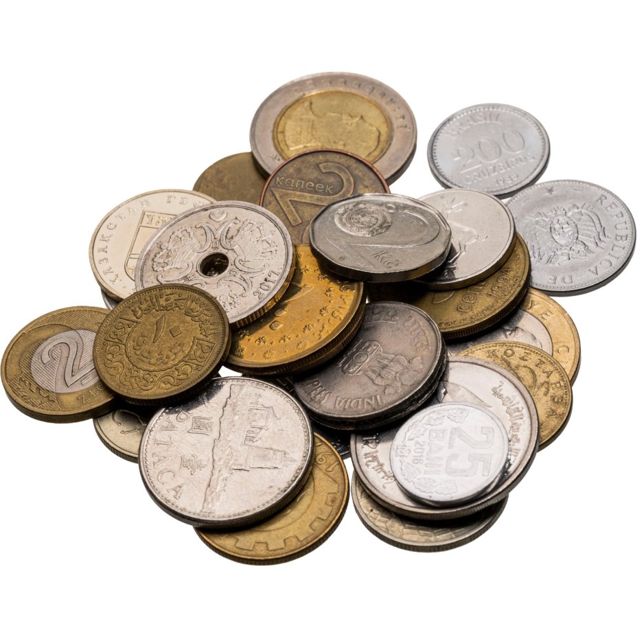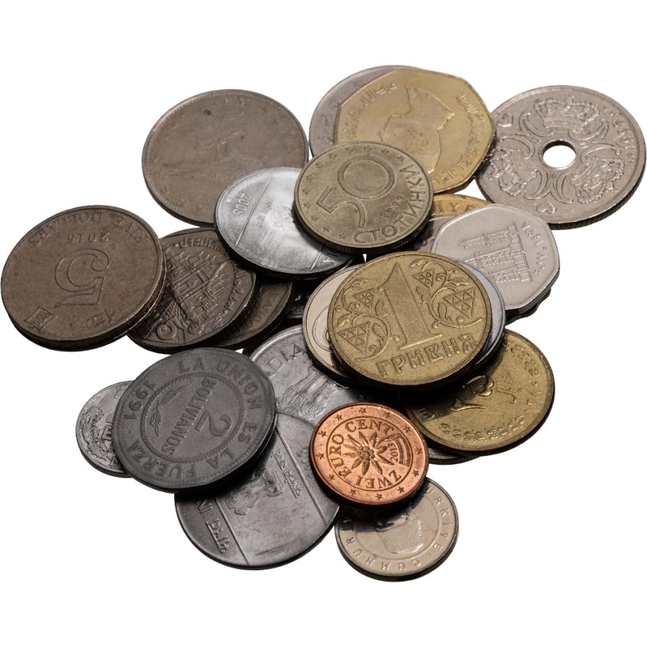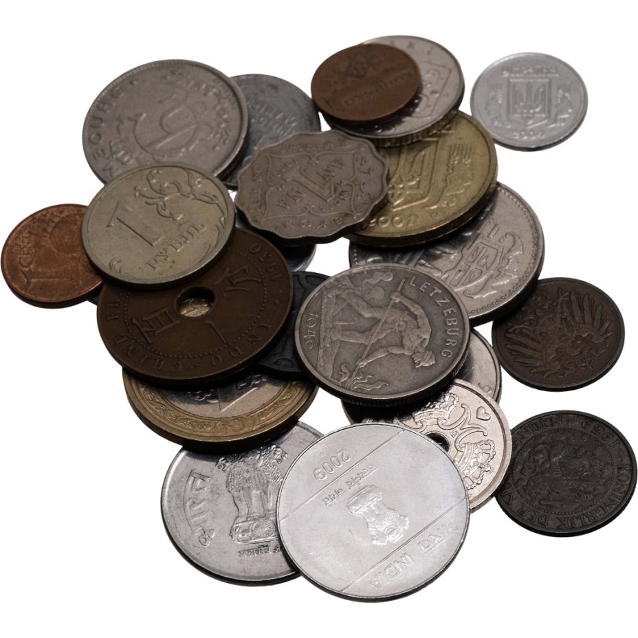 Набор из 20-ти монет разных стран мира "Монеты номиналом 1 единичка" в мешочке