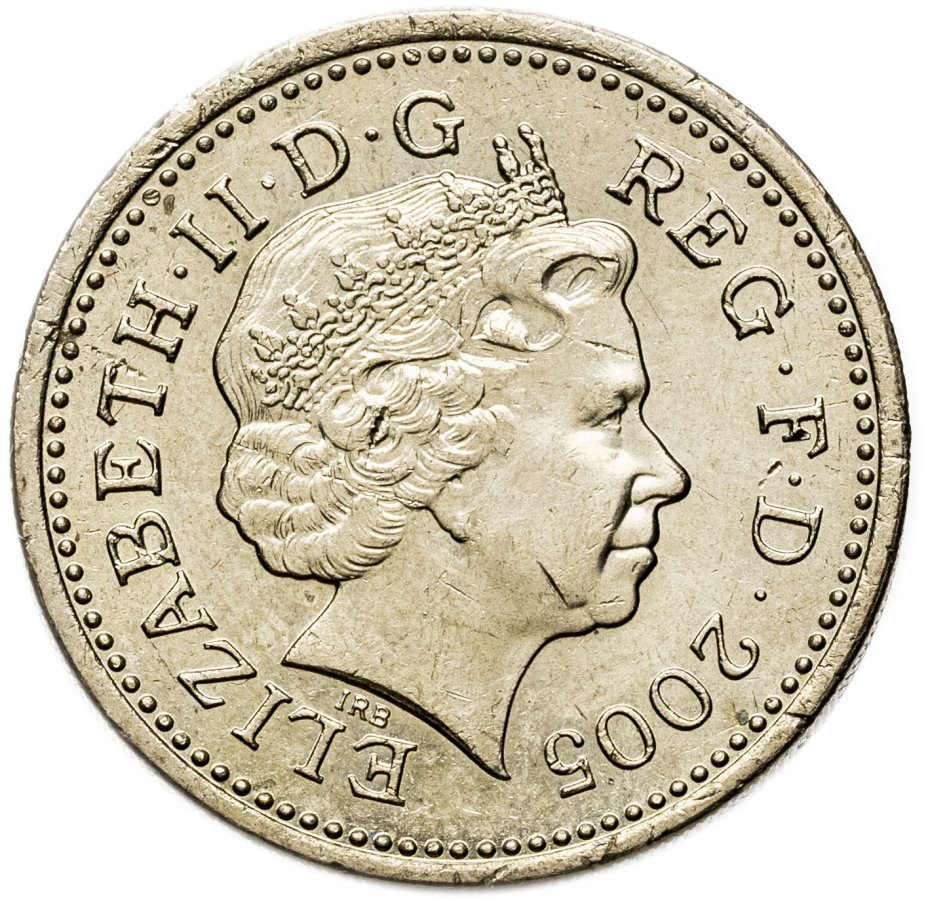 Великобритания в апреле 1983 года начала чеканить металлические деньги 1 фунт. На его аверсе отчеканен портрет королевы Елизаветы II, а реверс украшен гербом Соединенного Королевства и составляющих его государств (Англии, Уэльса, Северной Ирландии и Шотландии). В последующих сериях в тематиках реверсов использовались эмблемы столиц Королевства, цветочная символика, геральдические знаки, растения и мосты. Например, на обратных сторонах трех отчеканенных в 2011 году монет достоинством в 1 фунт, Великобритания разместила три варианта изображений: