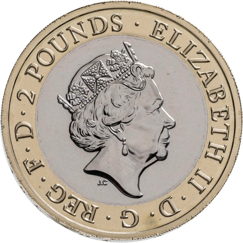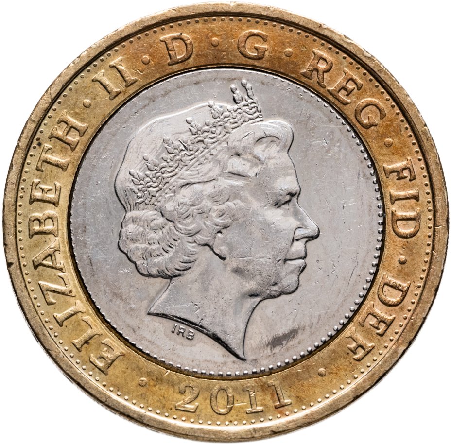 - Разновидность: 25 лет биметаллической монете 2 фунта
