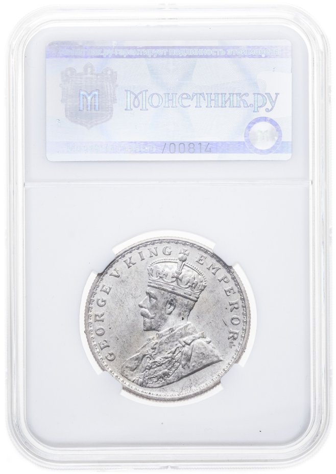 Британская Индия 1 рупия (rupee) 1920 в слабе Монетник.ру MS64