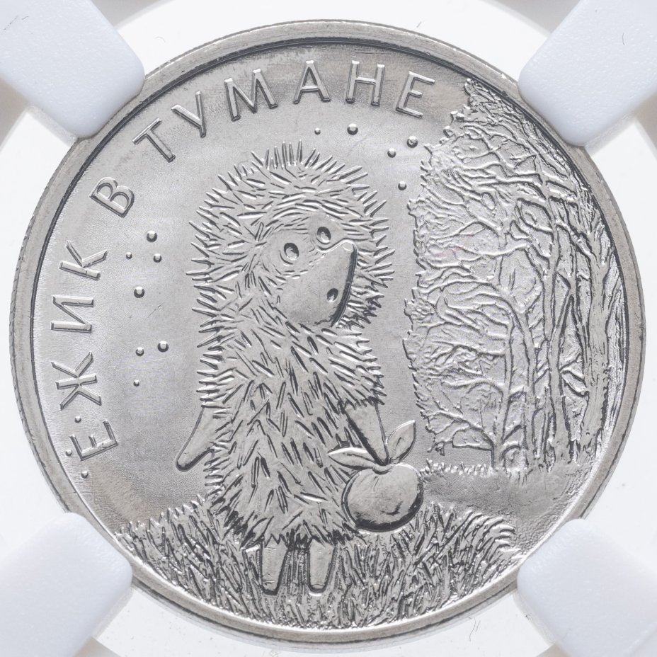 25 рублей 2024 ММД Российская (советская) мультипликация - мультфильм "Ежик в тумане" в слабе Монетник.ру MS67