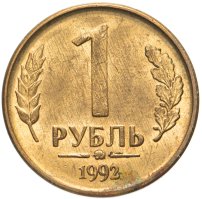 Стальная, плакированная латунью монета номиналом 1 рубль была выпущена в рамках эмиссионной программы 1992 года. Металлические денежные знаки обрели новый дизайн, его утвердили в том же году. Однако кризис экономики и гиперинфляция, которая к концу года достигла нереальных процентов, обесценили деньги, в том числе и рублёвую монету.